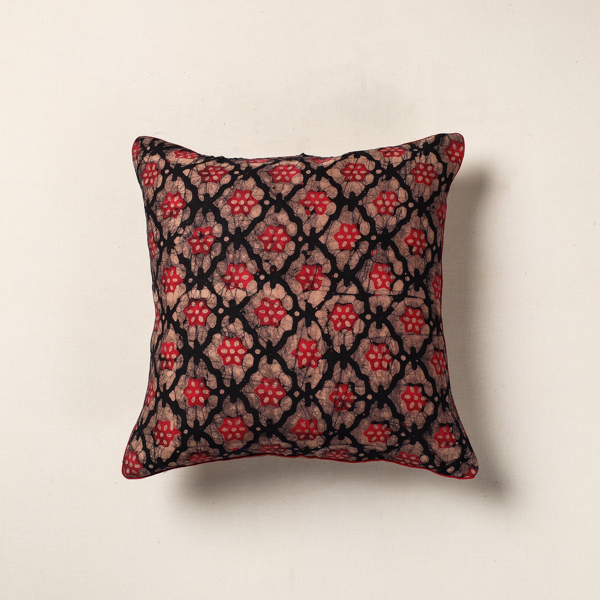 Fine quality brown hand batik printed cotton cushion cover. Batik is a technique of wax-resist dyeing applied to whole cloth, or cloth made using this technique. The traditional designs and motifs in Indian batik are often passed down from one generation to another.