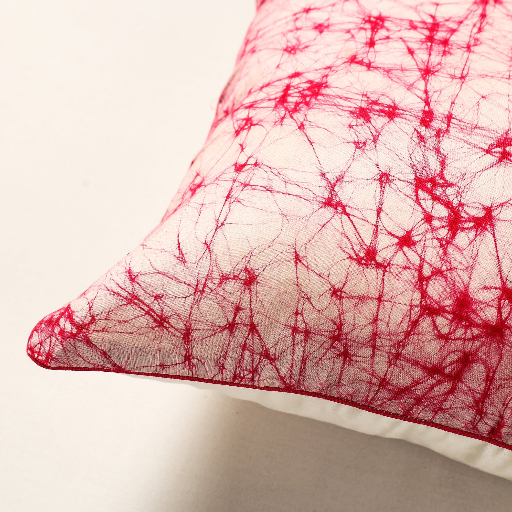 Fine quality pink hand batik printed cotton cushion cover. Batik is a technique of wax-resist dyeing applied to whole cloth, or cloth made using this technique. The traditional designs and motifs in Indian batik are often passed down from one generation to another.