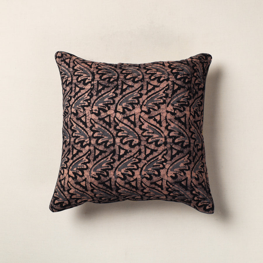 Fine quality brown hand batik printed cotton cushion cover. Batik is a technique of wax-resist dyeing applied to whole cloth, or cloth made using this technique. The traditional designs and motifs in Indian batik are often passed down from one generation to another.