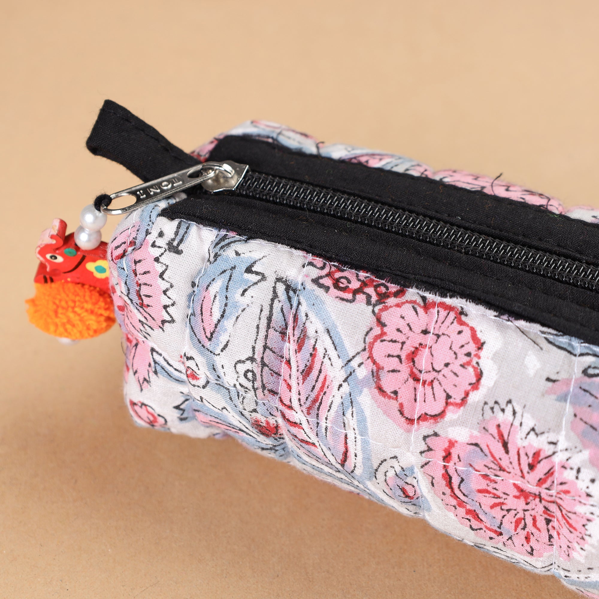 Experience the perfect blend of artistry and utility with our handcrafted brown quilted multipurpose pencil pouch. This pouch is made from sanganeri block printed cotton fabric with quilted filling, it exudes elegance. Features include a spacious interior for various items. Versatile and charming, it effortlessly complements your style. Embrace organization with flair!