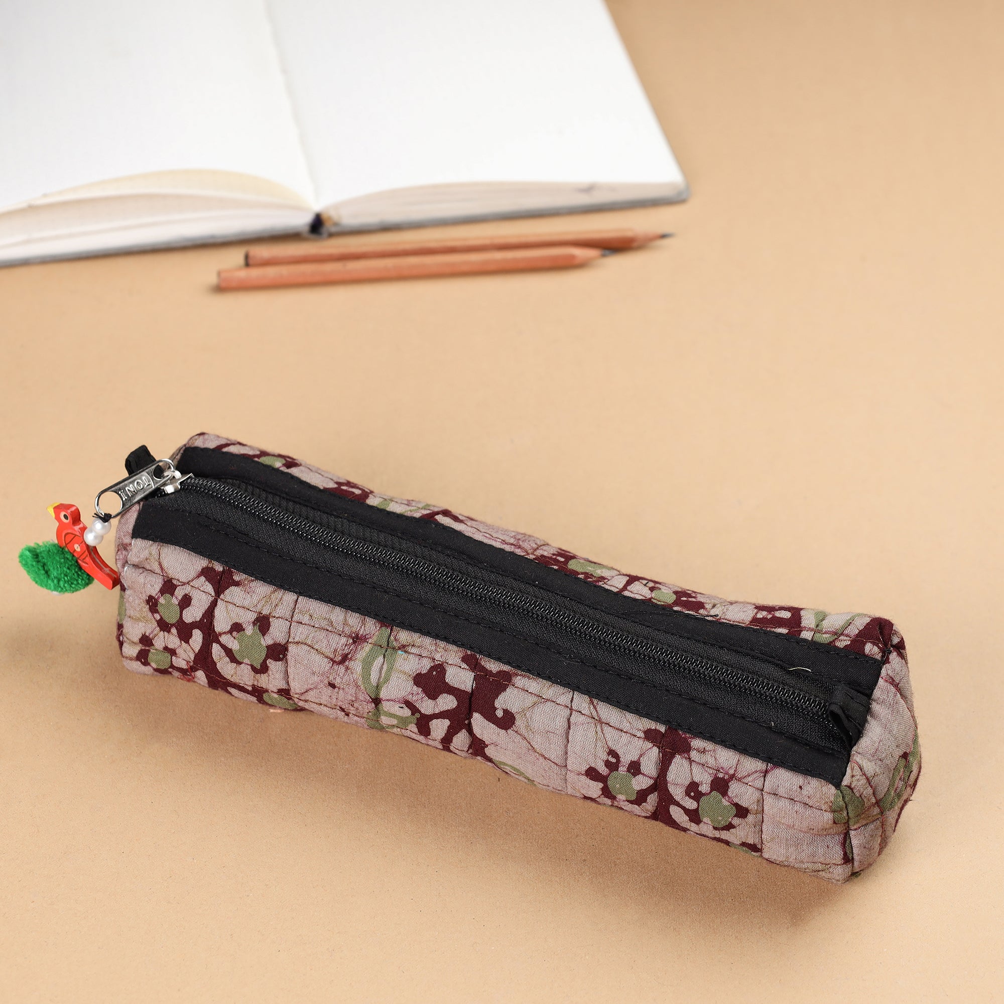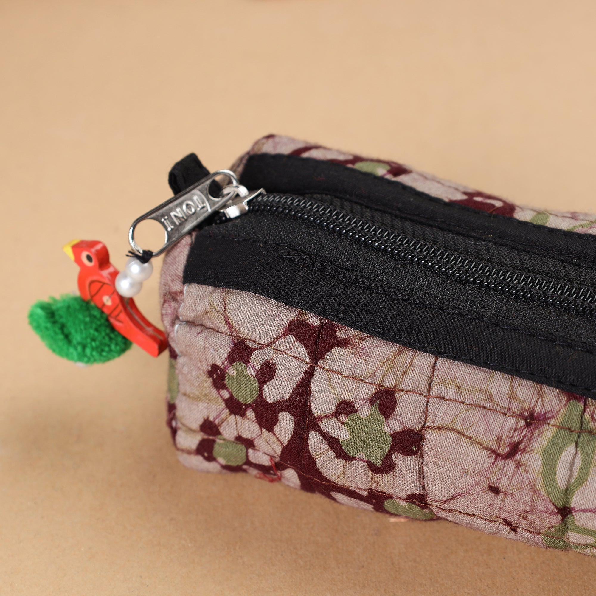 Experience the perfect blend of artistry and utility with our handcrafted maroon quilted multipurpose pencil pouch. This pouch is made from batik block printed cotton fabric with quilted filling, it exudes elegance. Features include a spacious interior for various items. Versatile and charming, it effortlessly complements your style. Embrace organization with flair!