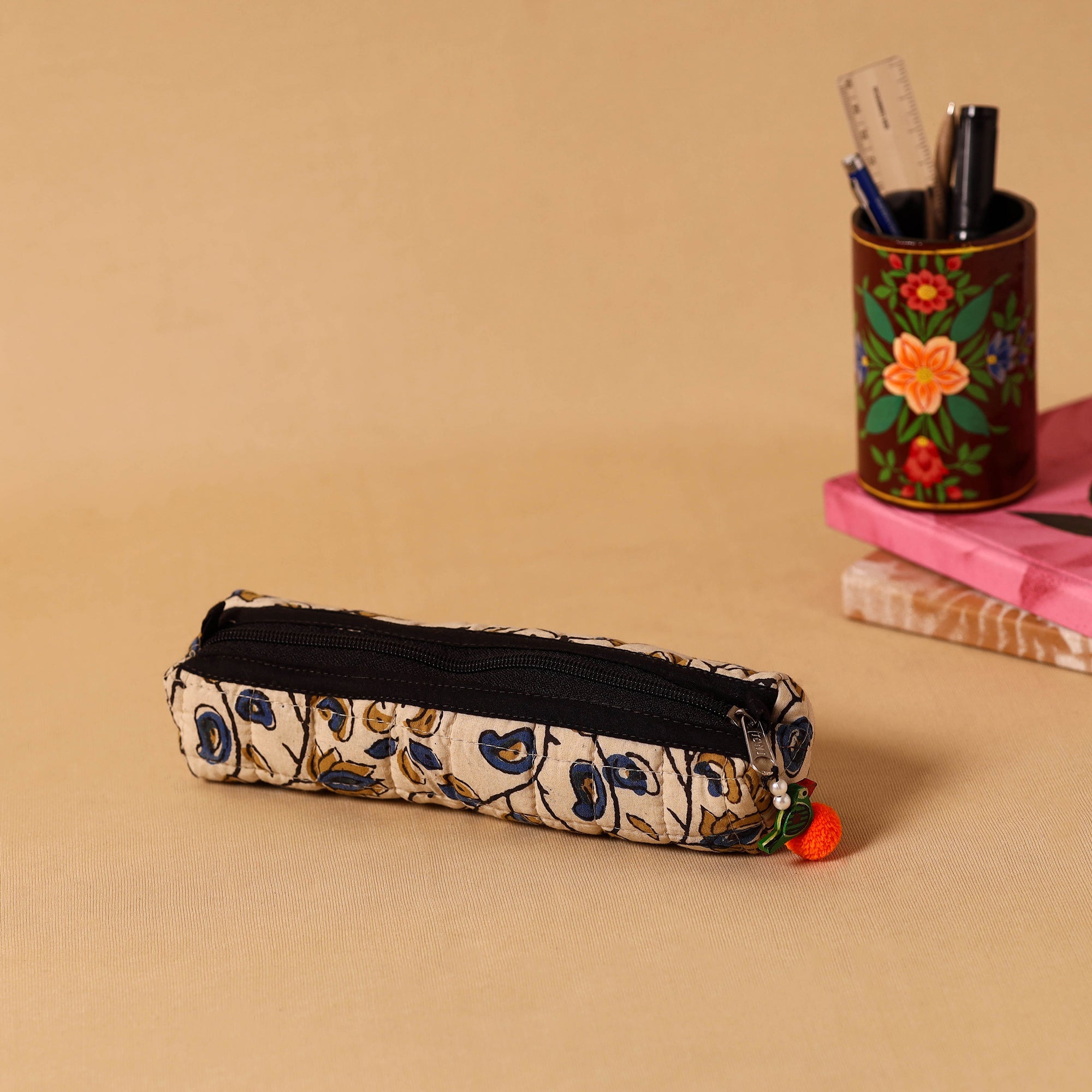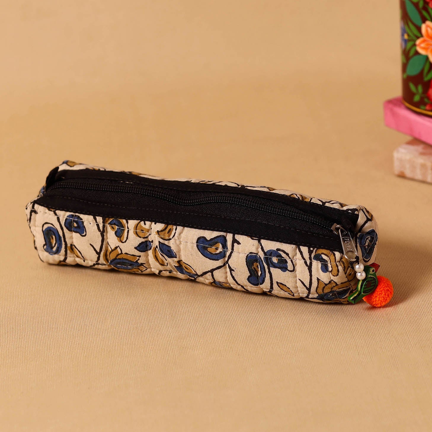 Experience the perfect blend of artistry and utility with our handcrafted beige quilted multipurpose pencil pouch. This pouch is made from ajrakh hand block printed cotton fabric with quilted filling, it exudes elegance. Features include a spacious interior for various items. Versatile and charming, it effortlessly complements your style. Embrace organization with flair!