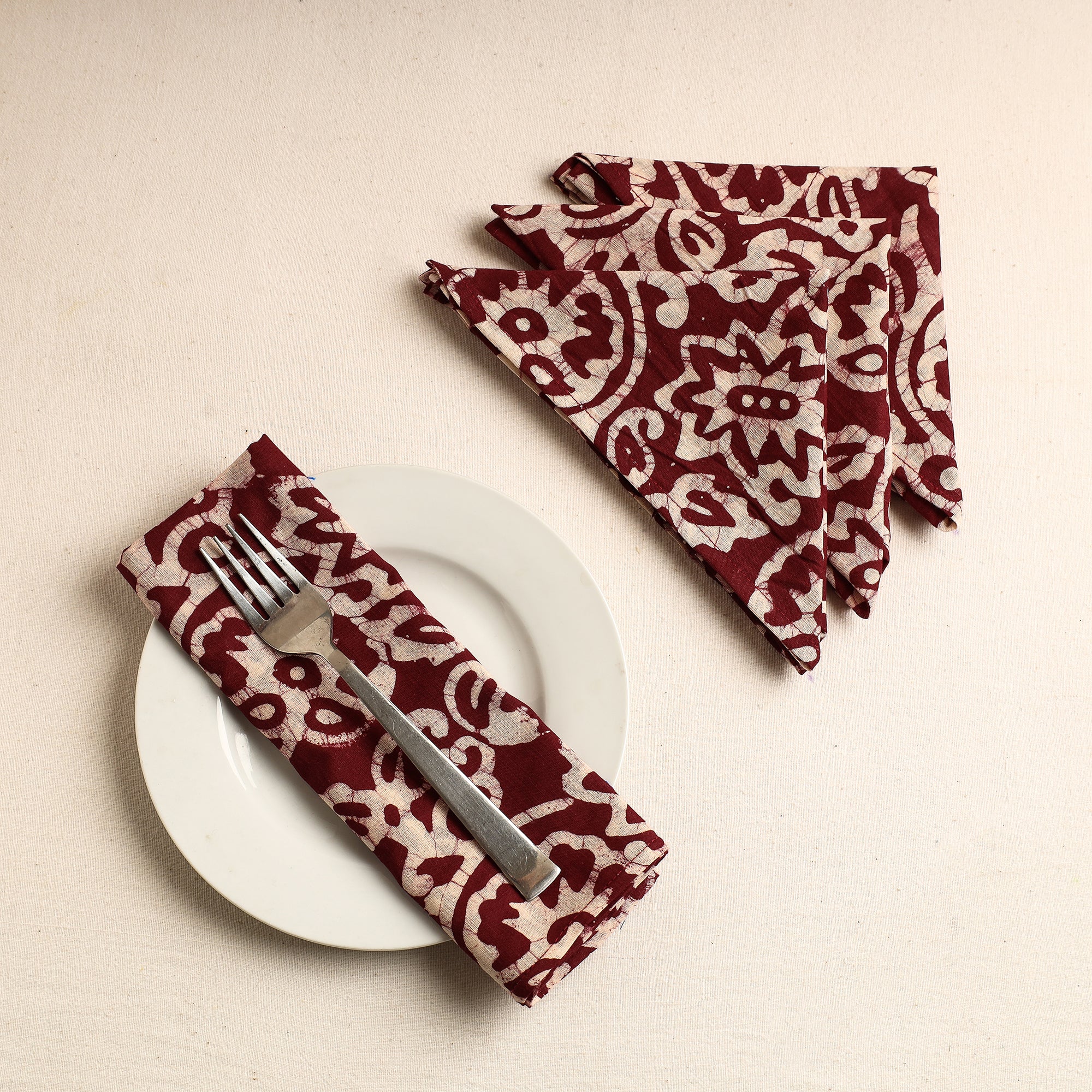 Elevate your dining experience with our exquisite maroon hand batik printed cotton table napkins. Each napkin is a testament to artisanal precision, featuring unique patterns and vibrant colors. Ideal for both casual meals and formal occasions, these napkins effortlessly blend aesthetics with functionality, adding a touch of elegance to your table setting.