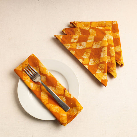 Elevate your dining experience with our exquisite yellow hand batik printed cotton table napkins. Each napkin is a testament to artisanal precision, featuring unique patterns and vibrant colors. Ideal for both casual meals and formal occasions, these napkins effortlessly blend aesthetics with functionality, adding a touch of elegance to your table setting.