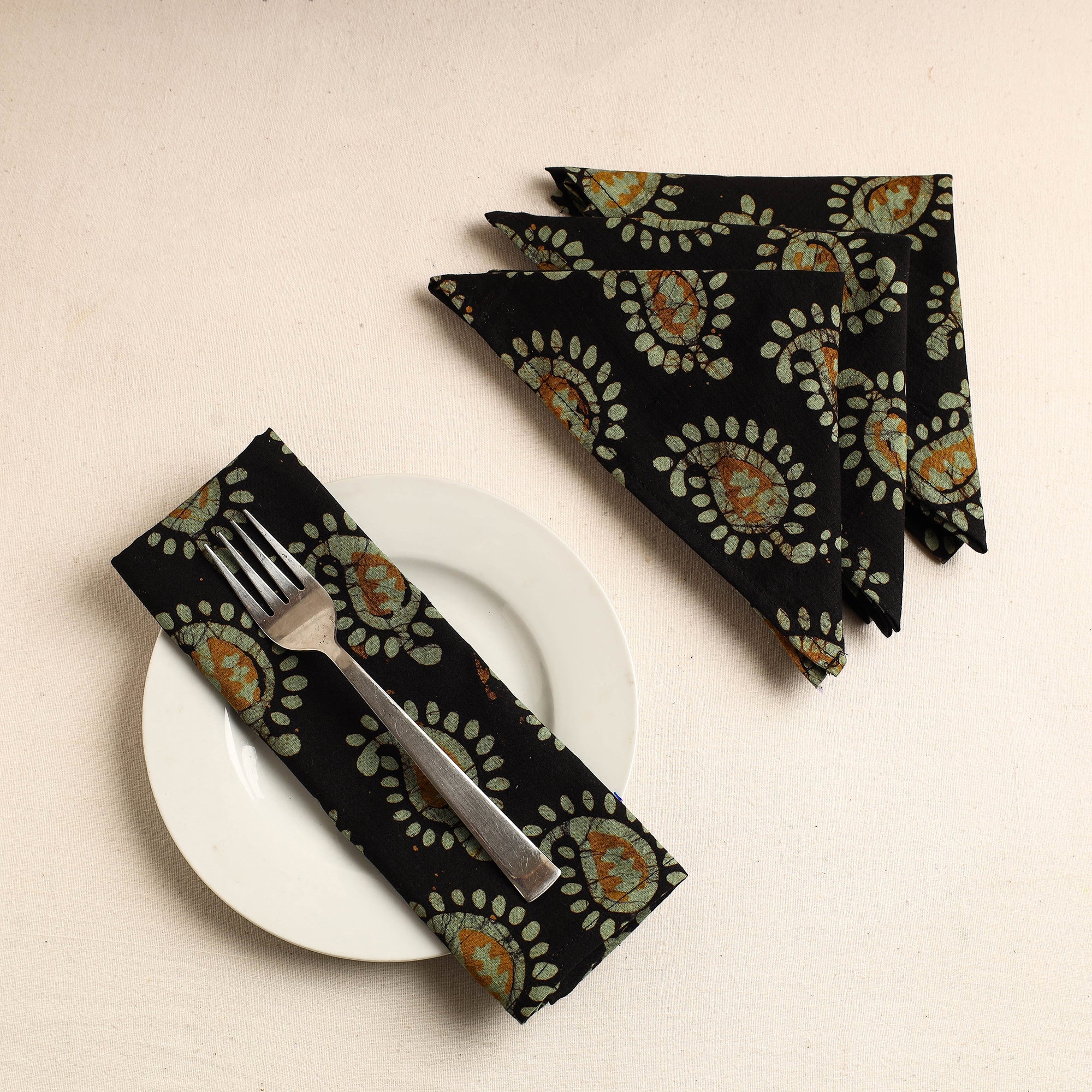 Elevate your dining experience with our exquisite black hand batik printed cotton table napkins. Each napkin is a testament to artisanal precision, featuring unique patterns and vibrant colors. Ideal for both casual meals and formal occasions, these napkins effortlessly blend aesthetics with functionality, adding a touch of elegance to your table setting.