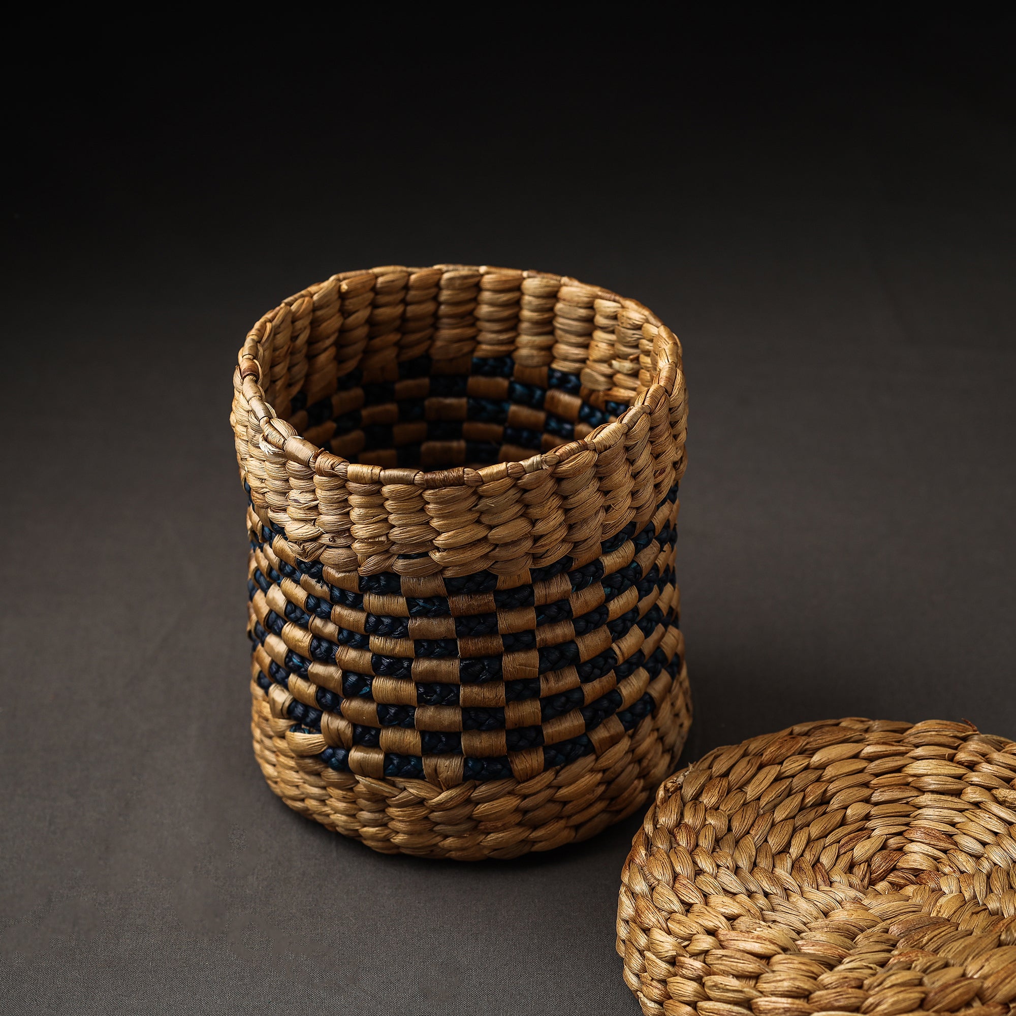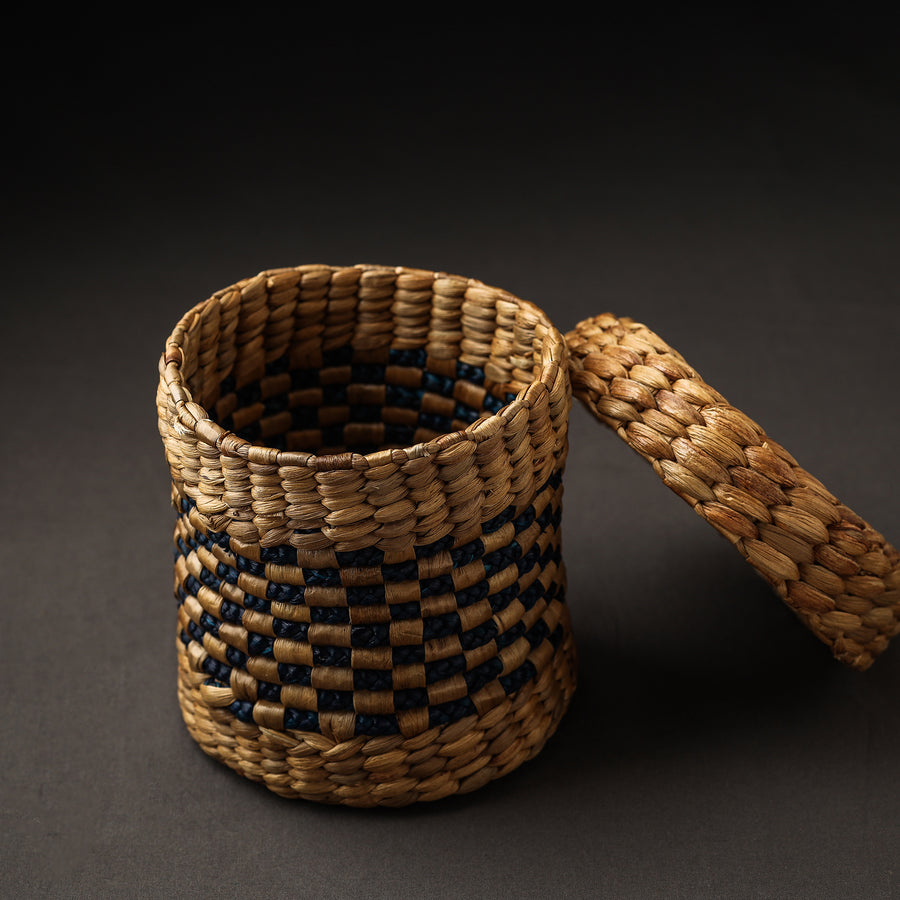 This brown handcrafted organic water hyacinth multipurpose storage box is intricately detailed with unique patterns made from naturally dried water hyacinth reed fiber. The intricate patterns are achieved through a meticulous handcrafting process, where skilled artisans of Assam carefully weave the naturally dried water hyacinth reed fibers together to create a multipurpose box. Water hyacinth is a fast-growing aquatic plant, making it a sustainable and eco-friendly material choice for this multipurpose box. Perfect for stylishly storing belongings, it brings a touch of nature indoors.
