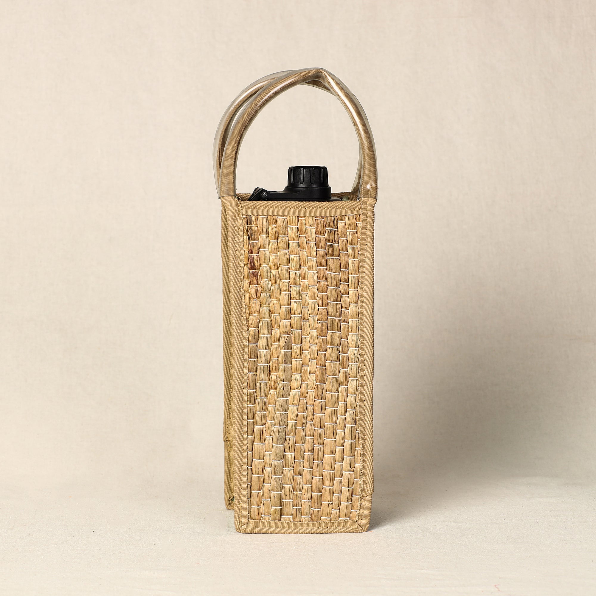 This handcrafted organic water hyacinth beige bottle bag is intricately detailed with unique patterns made from naturally dried water hyacinth reed fiber. The intricate patterns are achieved through a meticulous handcrafting process, where skilled artisans of Assam carefully weave the naturally dried water hyacinth reed fibers together to create a bottle bag. Water hyacinth is a fast-growing aquatic plant, making it a sustainable and eco-friendly material choice for this bottle bag. Ideal for carrying water bottles on the go, it effortlessly elevates your eco-conscious lifestyle while adding a touch of natural charm to your daily routine.