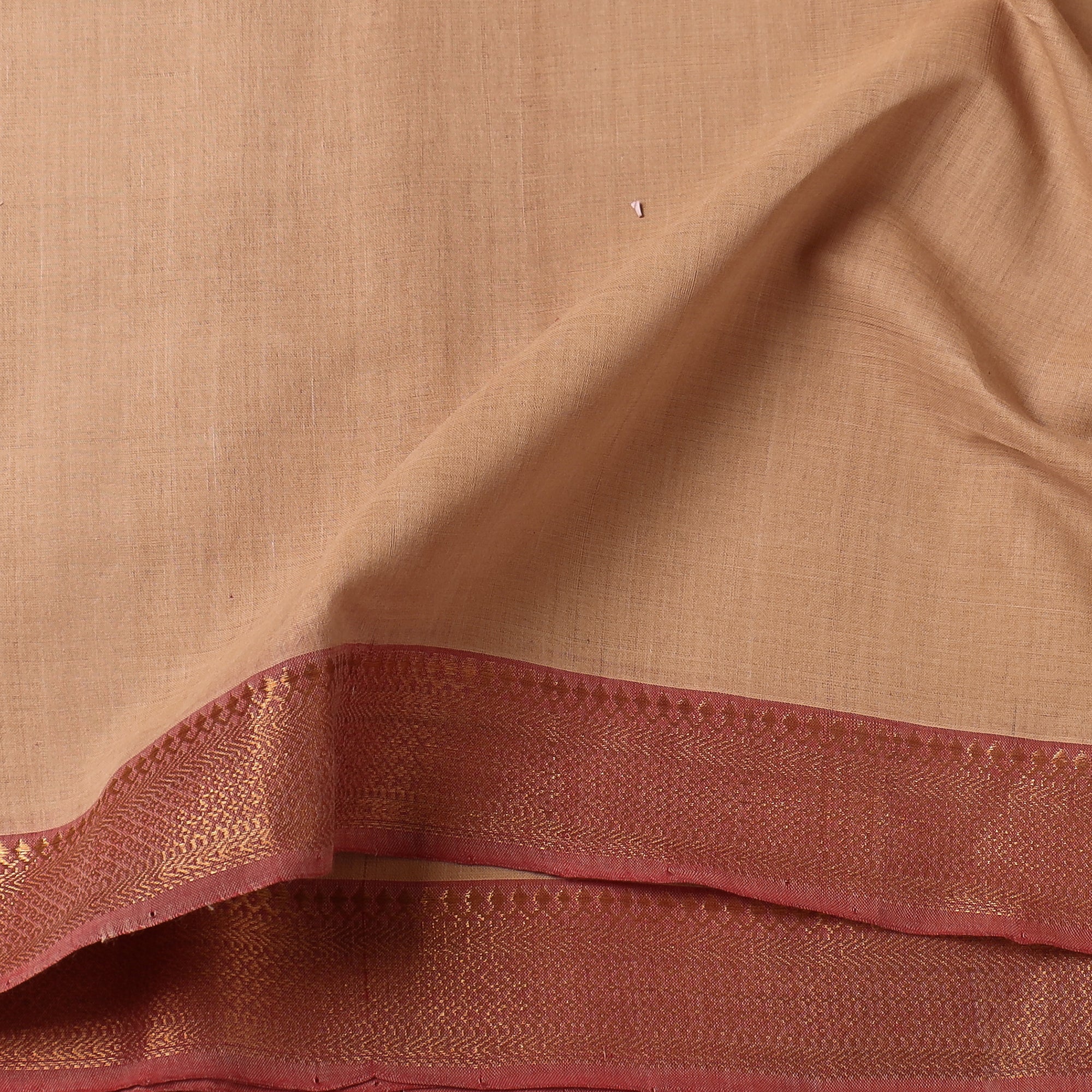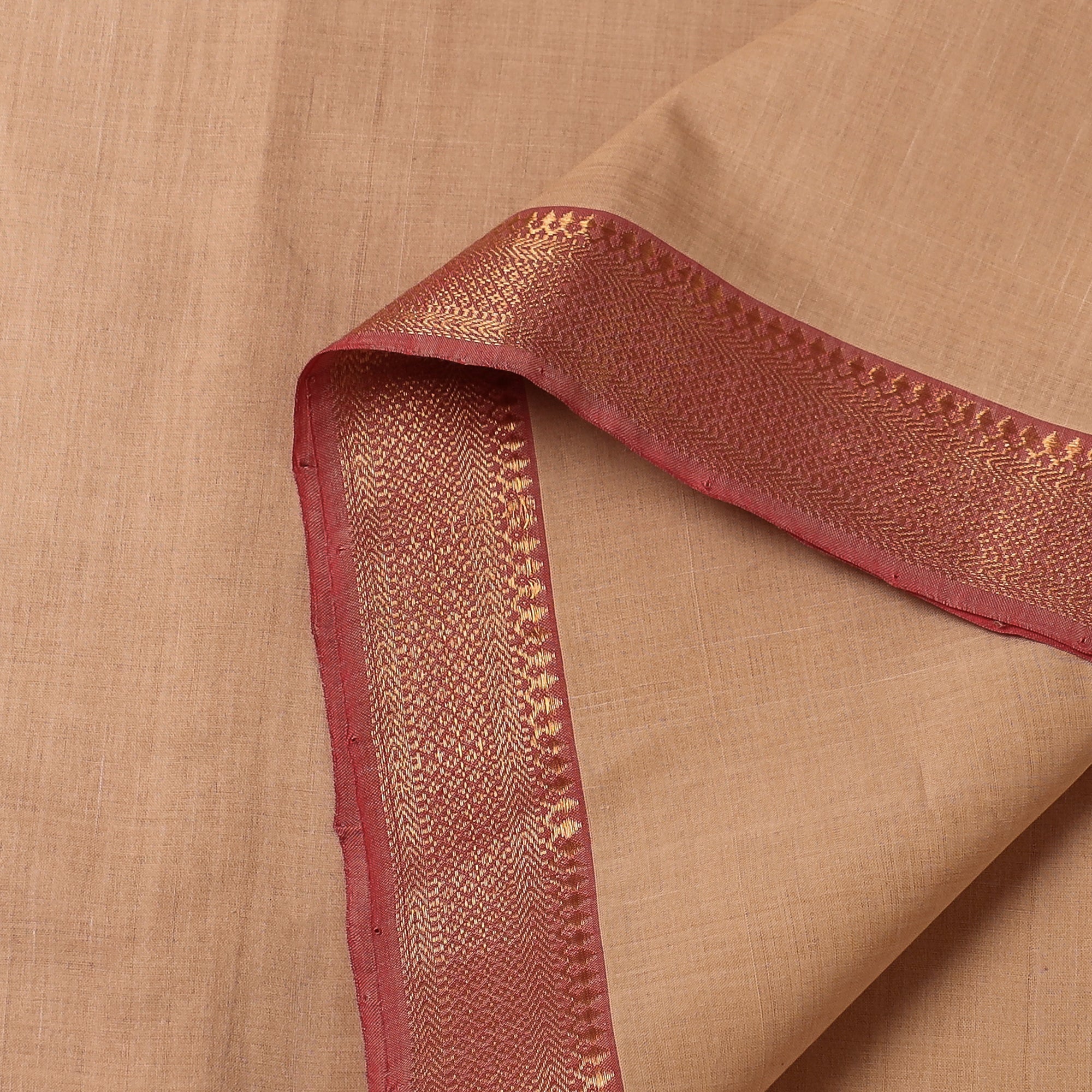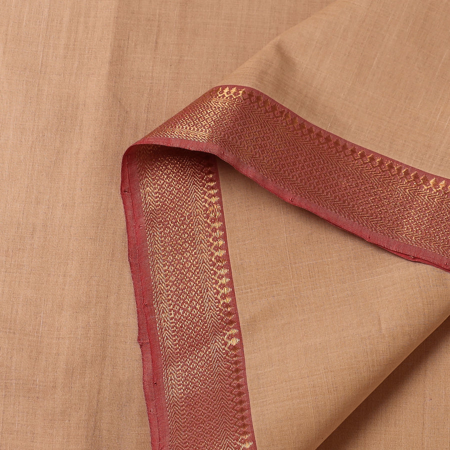 Experience the elegance of our beige Mangalagiri cotton fabric, crafted with precision from Andhra Pradesh. This handloom fabric features a zari border that adds a touch of sophistication to any creation. Perfect for adding a unique touch to your wardrobe or home decor.