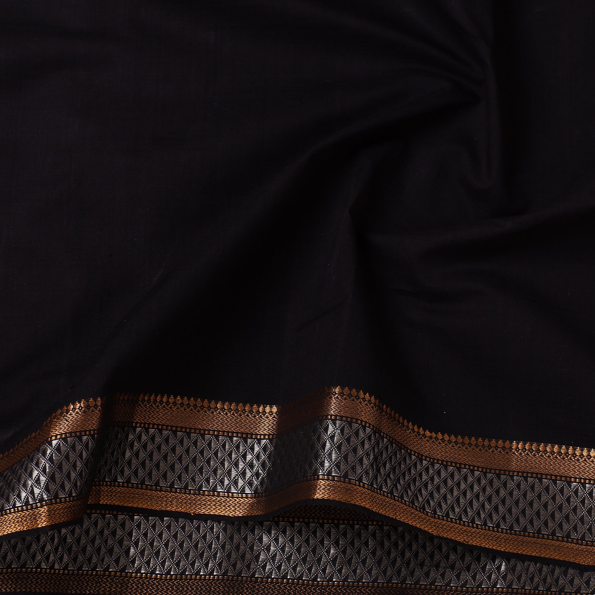 Fine quality black handloom mangalagiri cotton fabric from Andhra Pradesh. Crafted with care, this fabric features a stunning two-sided zari border, adding a touch of charm to its beauty. Made from high-quality cotton, this soft and breathable fabric is ideal for creating sarees, stylish kurtas, and comfortable salwar suits.