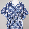 Fine quality shibori tie-dye cotton kaftan. A traditional kaftan or caftan is an short-length garment with long, flowing sleeves. It has an adjustable drawstring waist. These loose-fitting cotton kaftans are enhanced by hand dyed using shibori tie and dye technique in which the fabric is tied using clamp or stitches in the required design and the pattern is dyed. This dress will allow you to move with ease and comfort. The drawstring waist tie will give you the freedom to customize the fit to suit your unique shape.