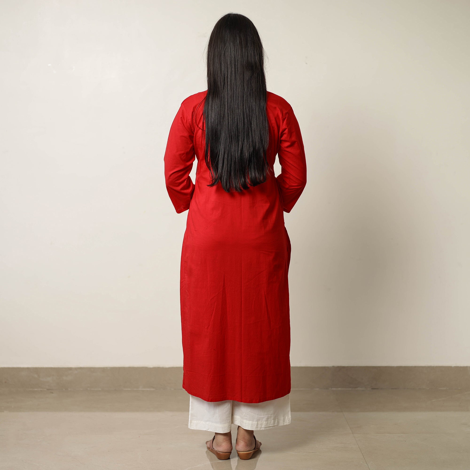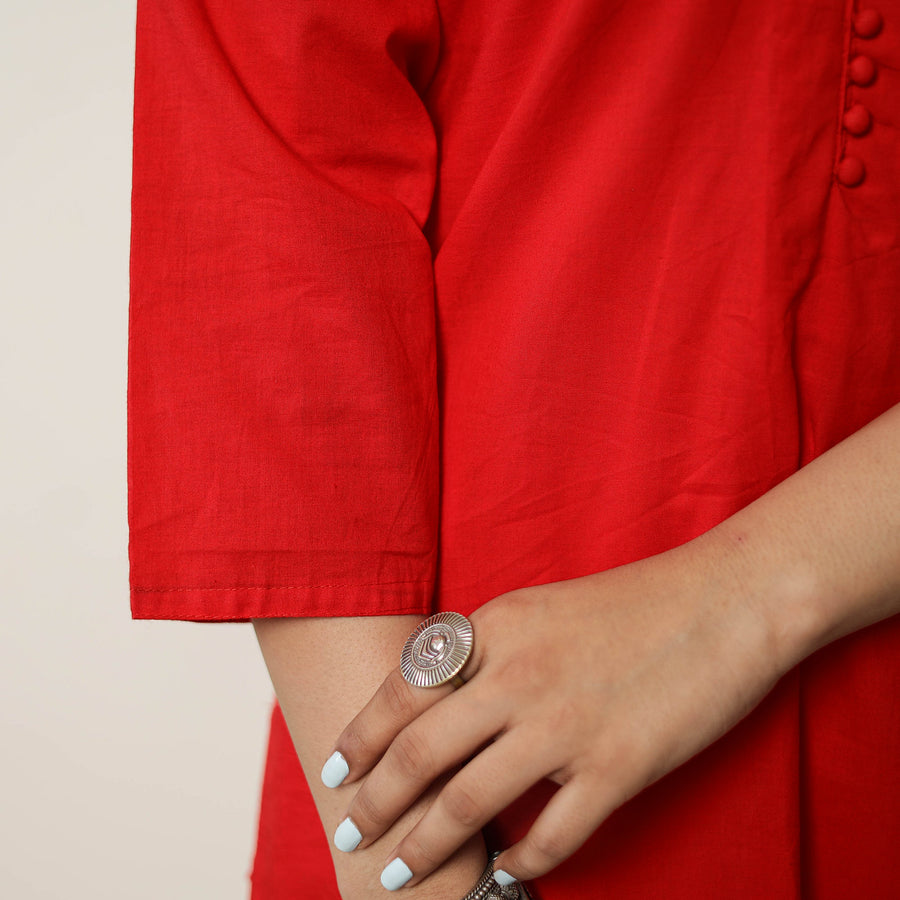 Look and feel beautiful in this uniquely designed plain dyed cotton long kurta with one side pocket. This cotton kurta makes you comfortable with ease all day long.