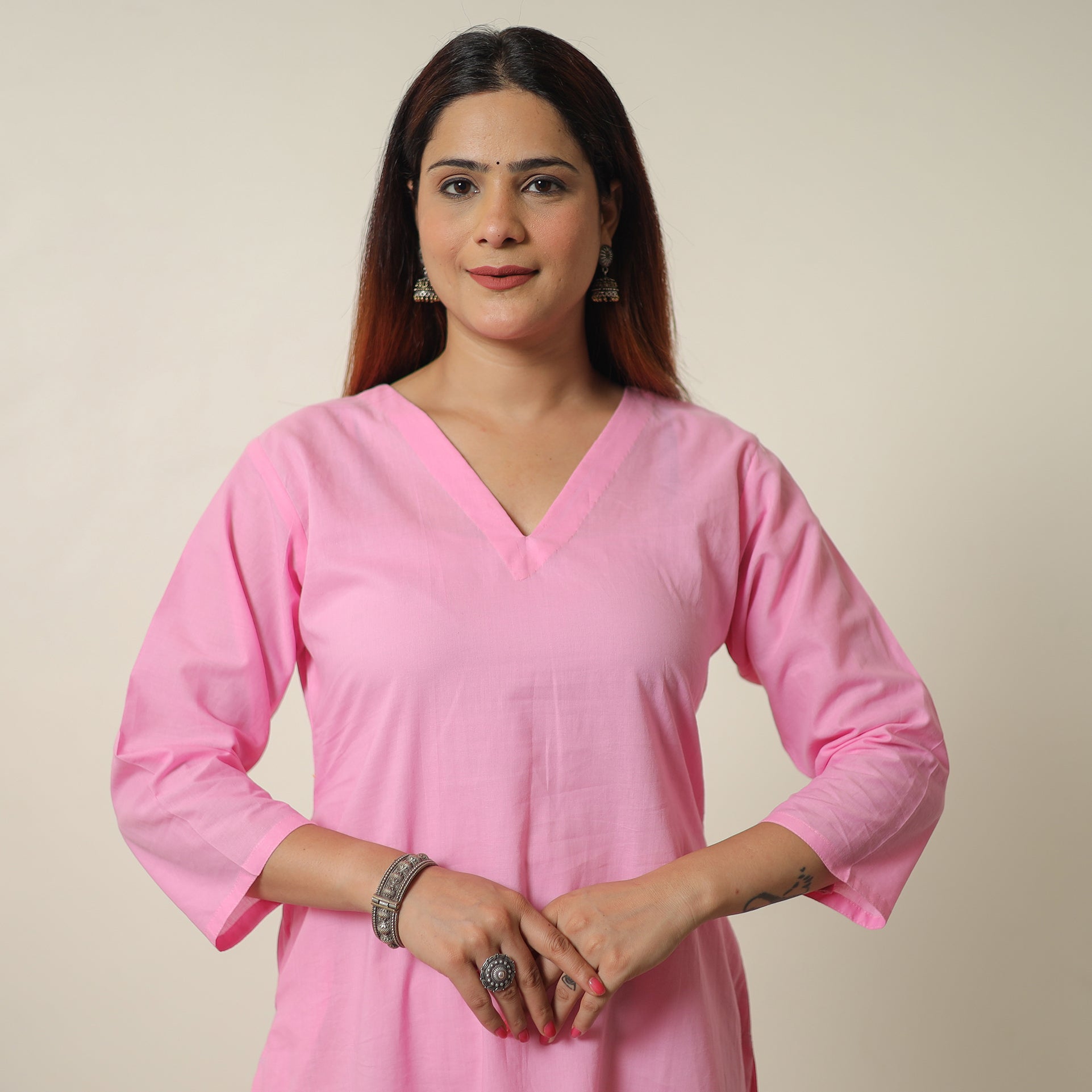 The length of kurta and kurtas is the main difference between them. Kurtas are generally long and reach up to the calf, whereas Kurtis are usually short and reach the waist or hips.