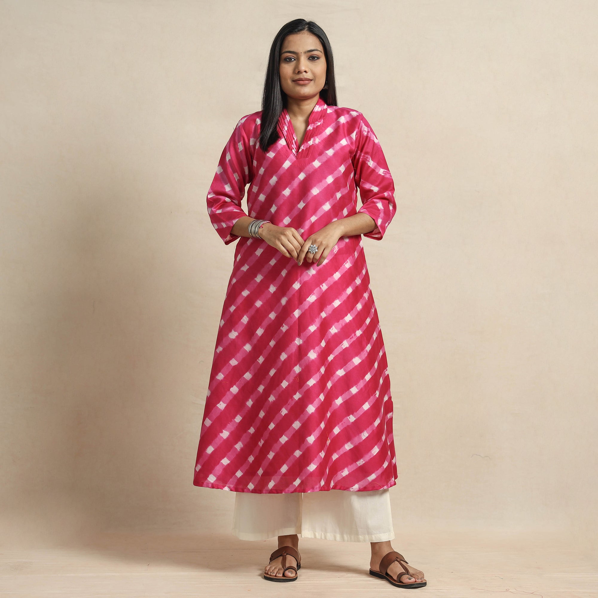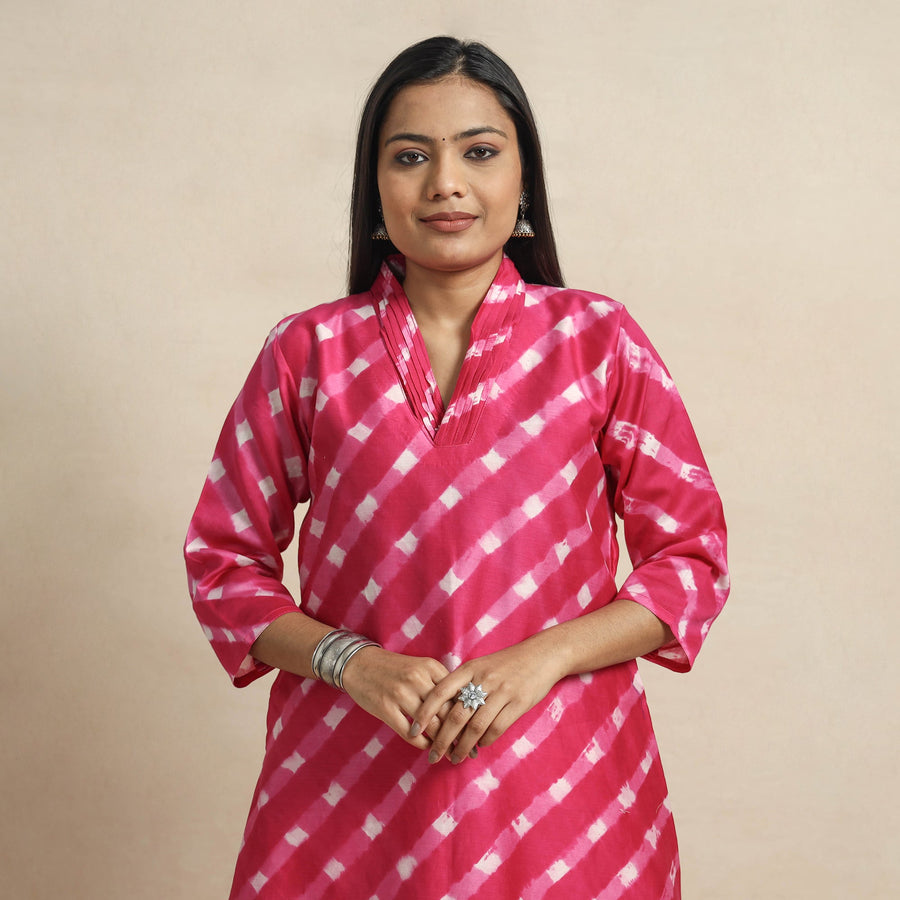 • Dark pink - leheriya tie-dye chanderi silk a-line kurta