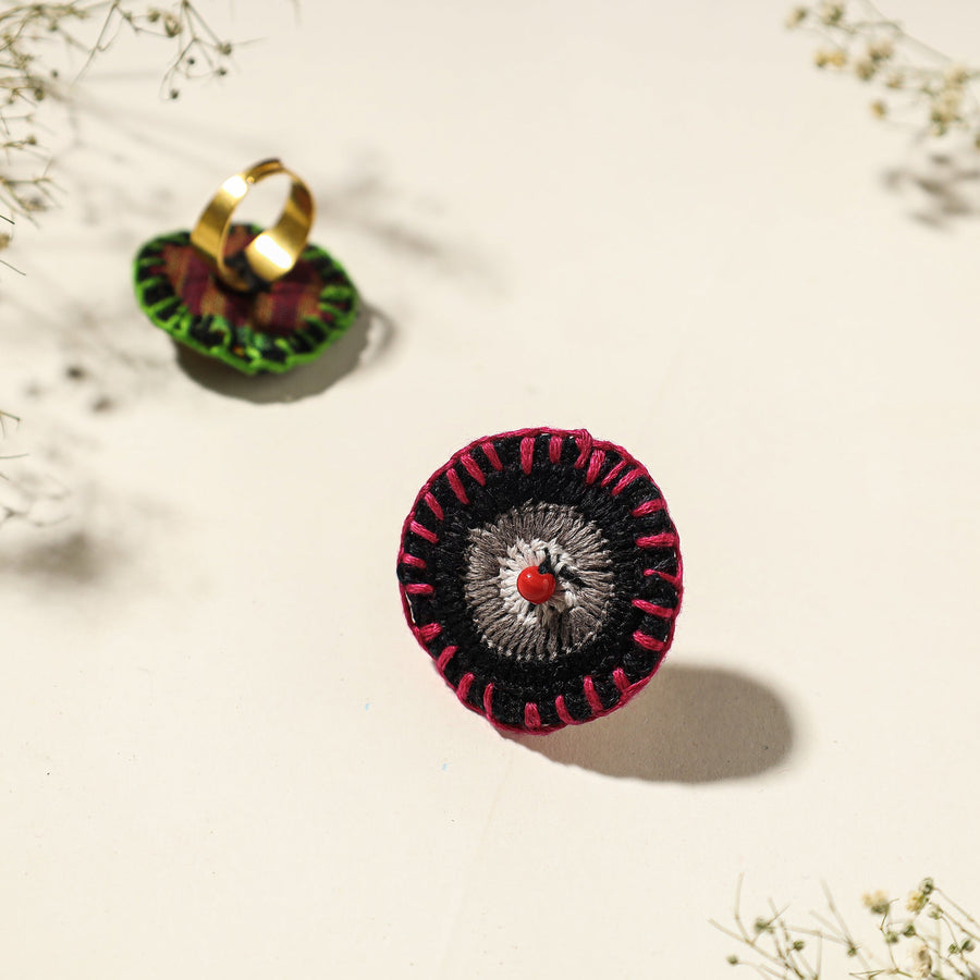 Elevate your style with our hand embroidered fabart beadwork adjustable ring by Rangila Dhaga, meticulously handcrafted with handloom gamcha fabrics. Adorned with intricate hand embroidery and delicate beadwork, this ring is a testament to artisanal excellence. Its adjustable design ensures a perfect fit, making it a versatile and elegant accessory. Embrace the artistry of traditional craft with this unique statement piece.
