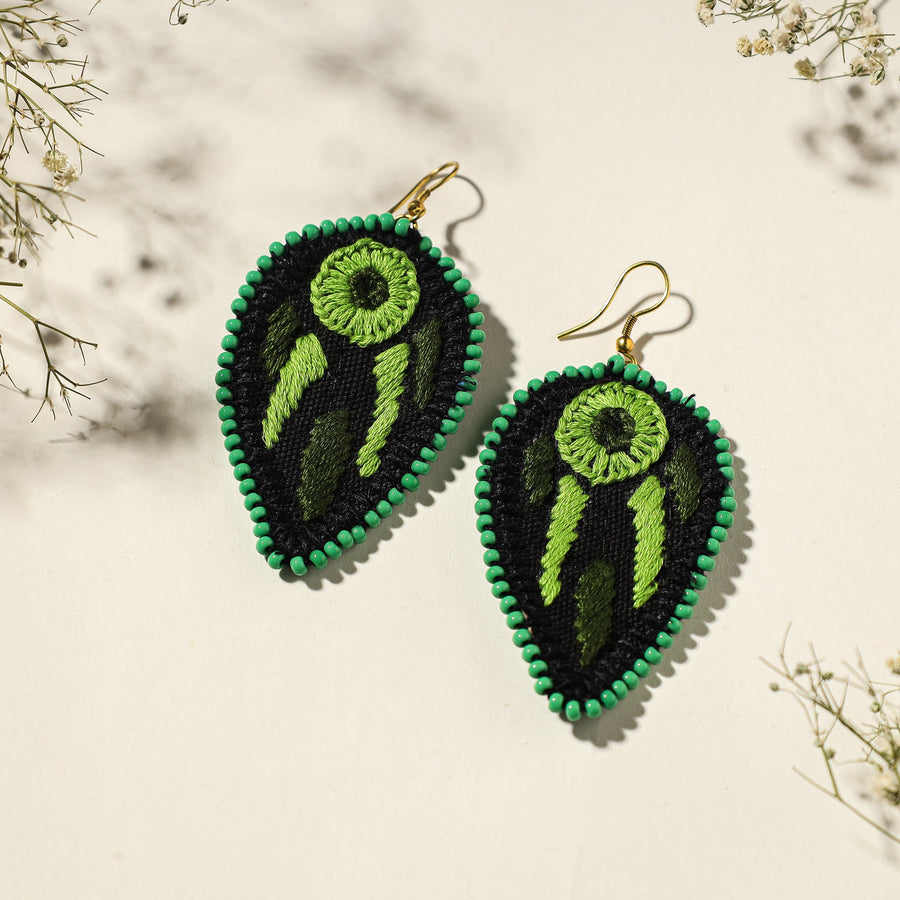 Elevate your style with our green hand embroidered fabart beadwork earrings by Rangila Dhaga, a unique accessory that seamlessly blends tradition with trend. Intricately designed with hand embroidery and beadwork on handloom fabrics, these earrings exude sophistication. Versatile and stylish, effortlessly elevate any outfit by adorning these exquisite earrings, showcasing a perfect blend of tradition and contemporary charm.