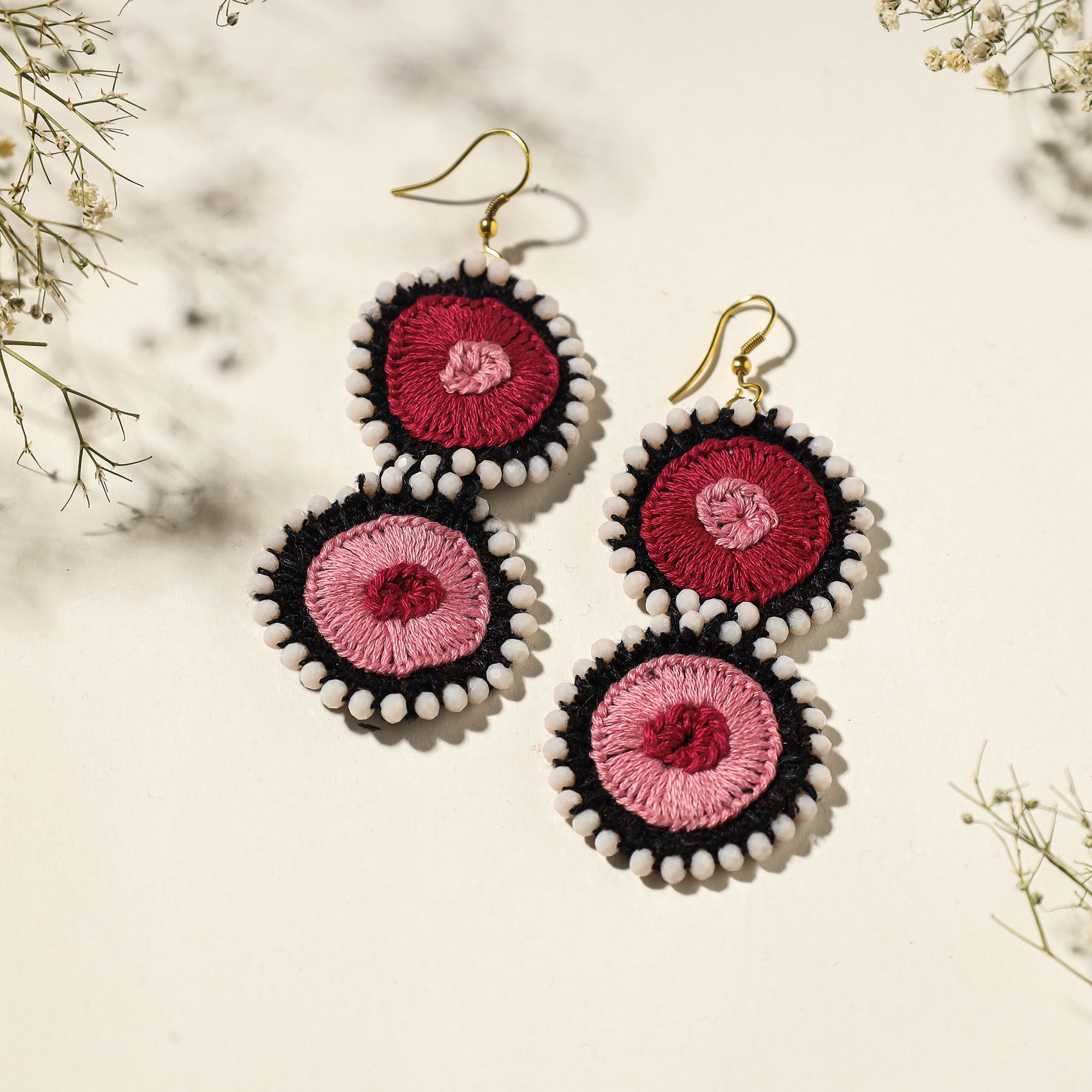 Elevate your style with our pink hand embroidered fabart beadwork earrings by Rangila Dhaga, a unique accessory that seamlessly blends tradition with trend. Intricately designed with hand embroidery and beadwork on handloom fabrics, these earrings exude sophistication. Versatile and stylish, effortlessly elevate any outfit by adorning these exquisite earrings, showcasing a perfect blend of tradition and contemporary charm.