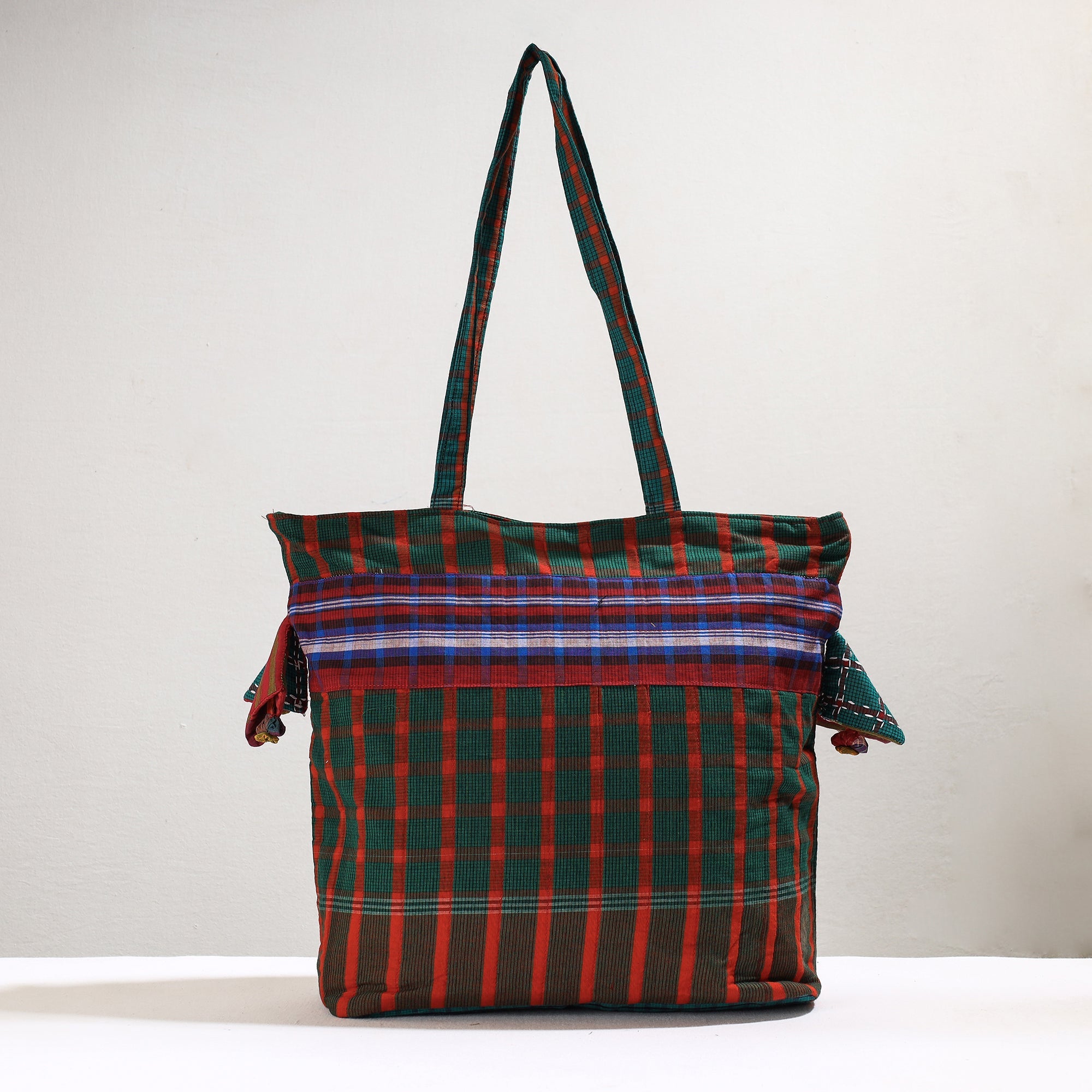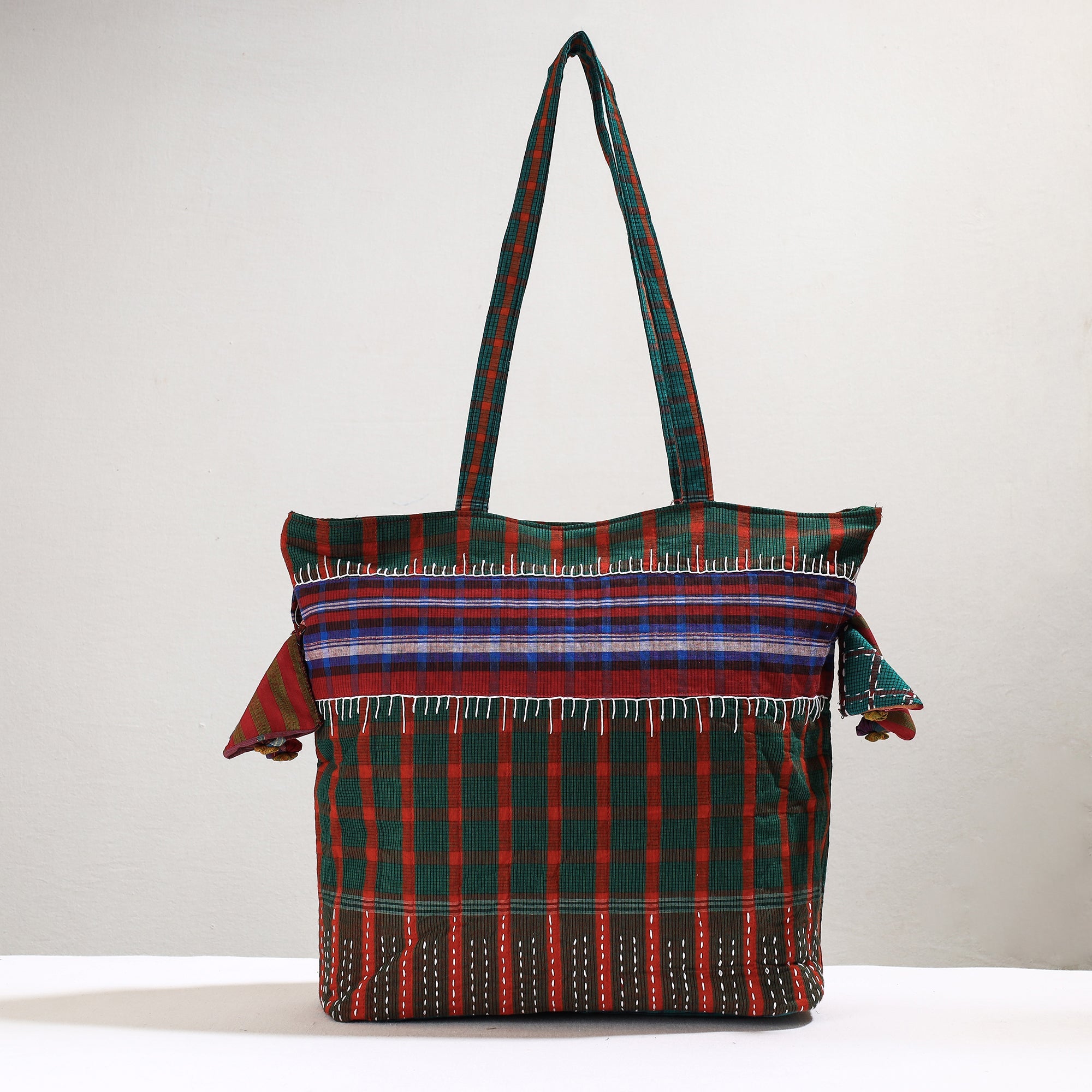 Elevate your style with our green handmade gamcha fabric kantha work tote bag. Meticulously crafted, the tote bag combines the traditional charm of Gamcha fabric with exquisite Kantha stitching. It has one zipper pocket. And it has enough space to accommodate most of the items. Embrace the charm of handmade craftsmanship while enjoying the functionality of a trendy, totebag.