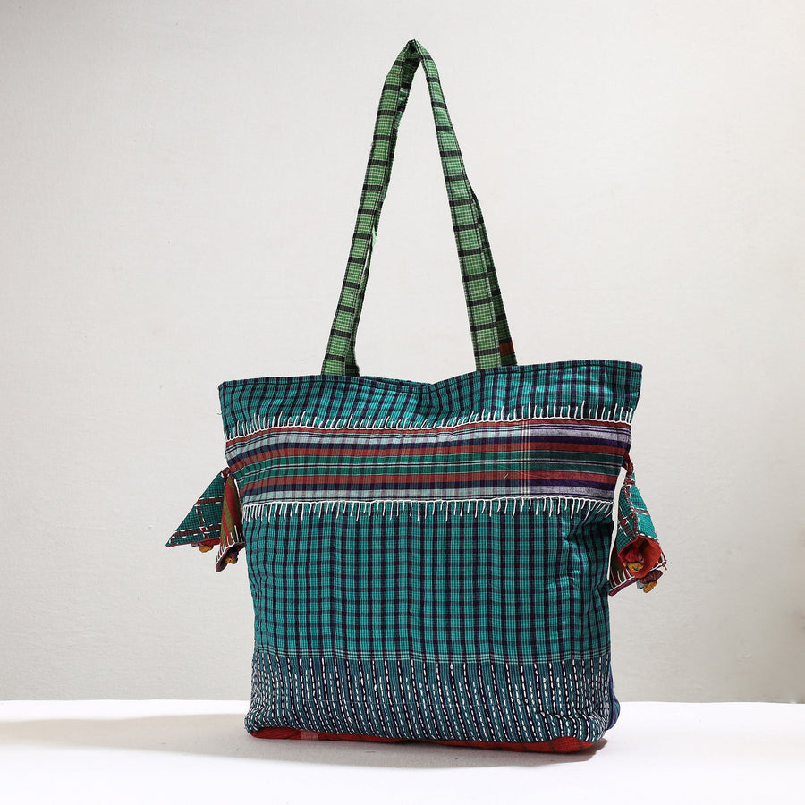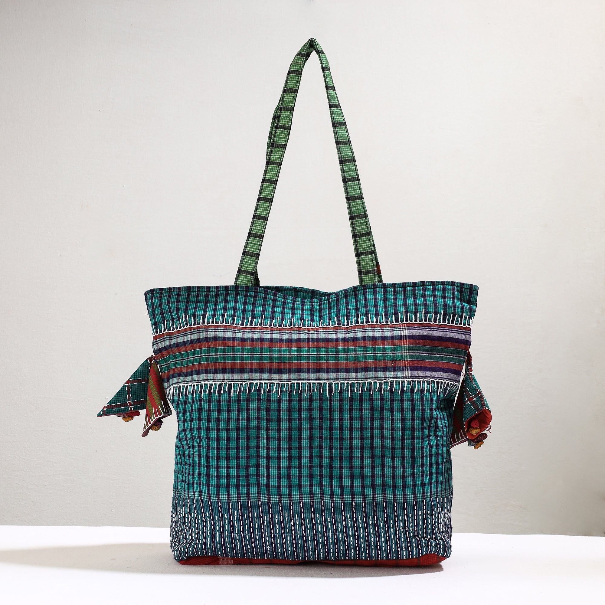 Elevate your style with our green handmade gamcha fabric kantha work tote bag. Meticulously crafted, the tote bag combines the traditional charm of Gamcha fabric with exquisite Kantha stitching. It has one zipper pocket. And it has enough space to accommodate most of the items. Embrace the charm of handmade craftsmanship while enjoying the functionality of a trendy, totebag.
