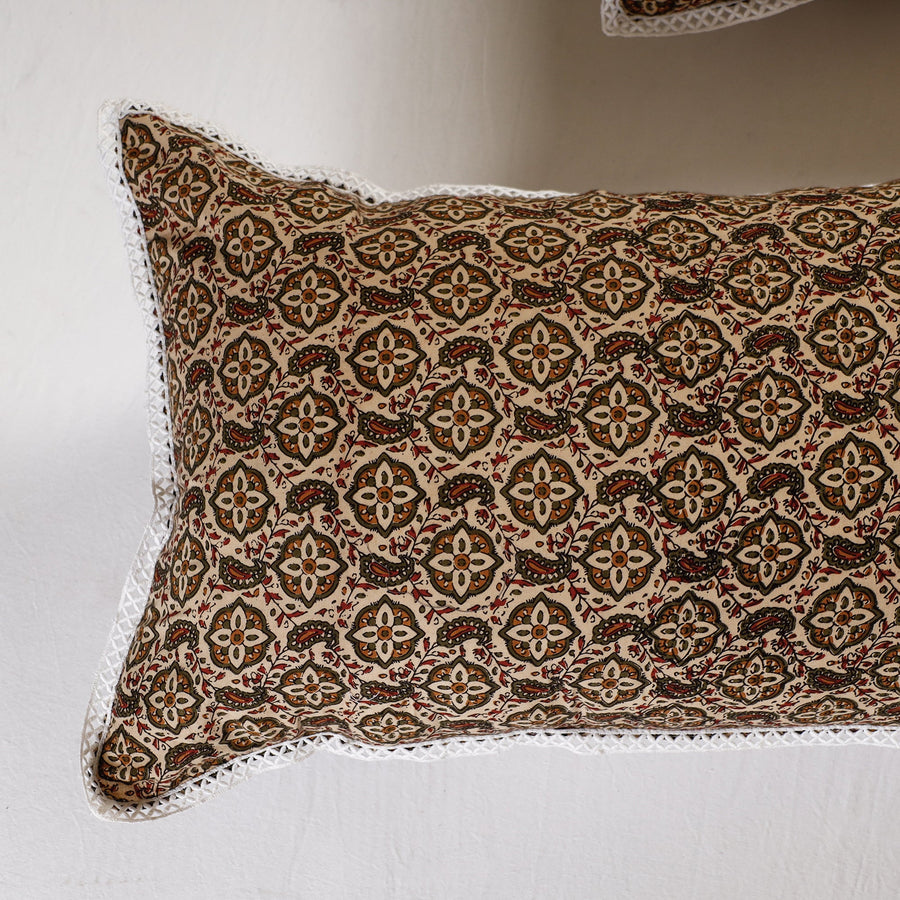 Fine quality sanganeri hand block printed pure cotton pillow cover with lace. Sanganeri is a hand-block printing technique originating from Sanganer, a village in the southern part of Jaipur, Rajasthan. Bleed free VAT dyes used.