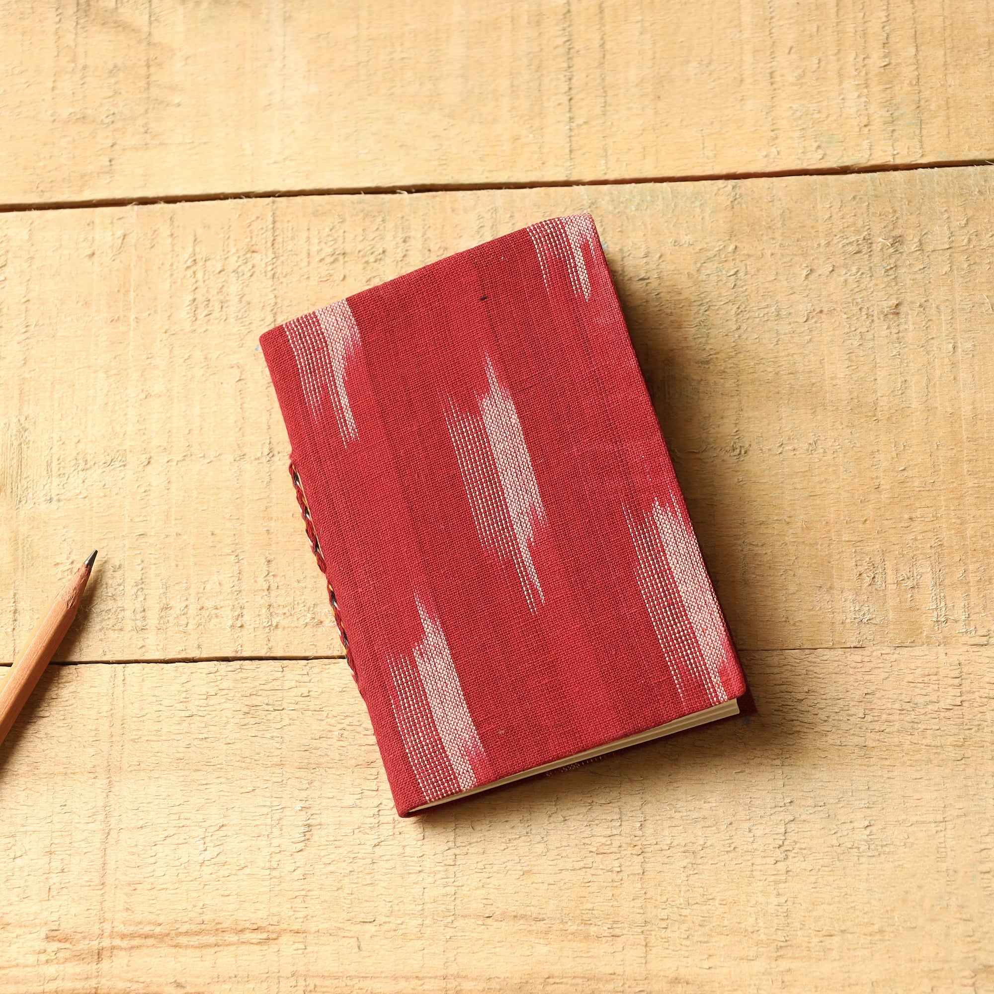 | Material | This hardbound notebook features a cover made of ikat cotton fabric with handmade paper pages. The paper is eco-friendly, made from recycled cotton, paper, and other natural fiber waste without the use of chemicals. Master artisans handcraft each notebook with attention to detail using traditional bookbinding techniques. |