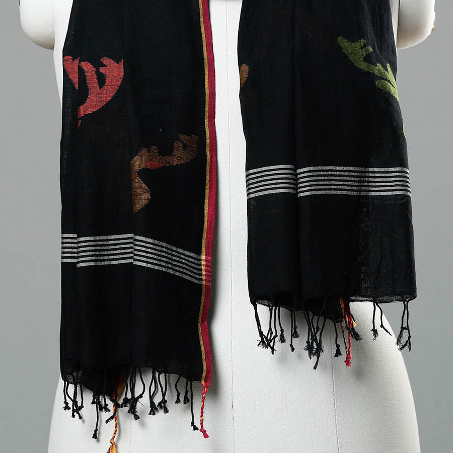 Experience the exquisite craftsmanship with our jamdani handloom cotton stole, made by the skilled artisans of Habibpur, Nadia District, West Bengal. Adorned with charming tassels. It seamlessly transitions from casual to formal occasions. This stole is a testament to the traditional weaving technique of Jamdani, showcasing the skilled artistry of West Bengal's artisans. Embrace elegance and cultural heritage in every thread.