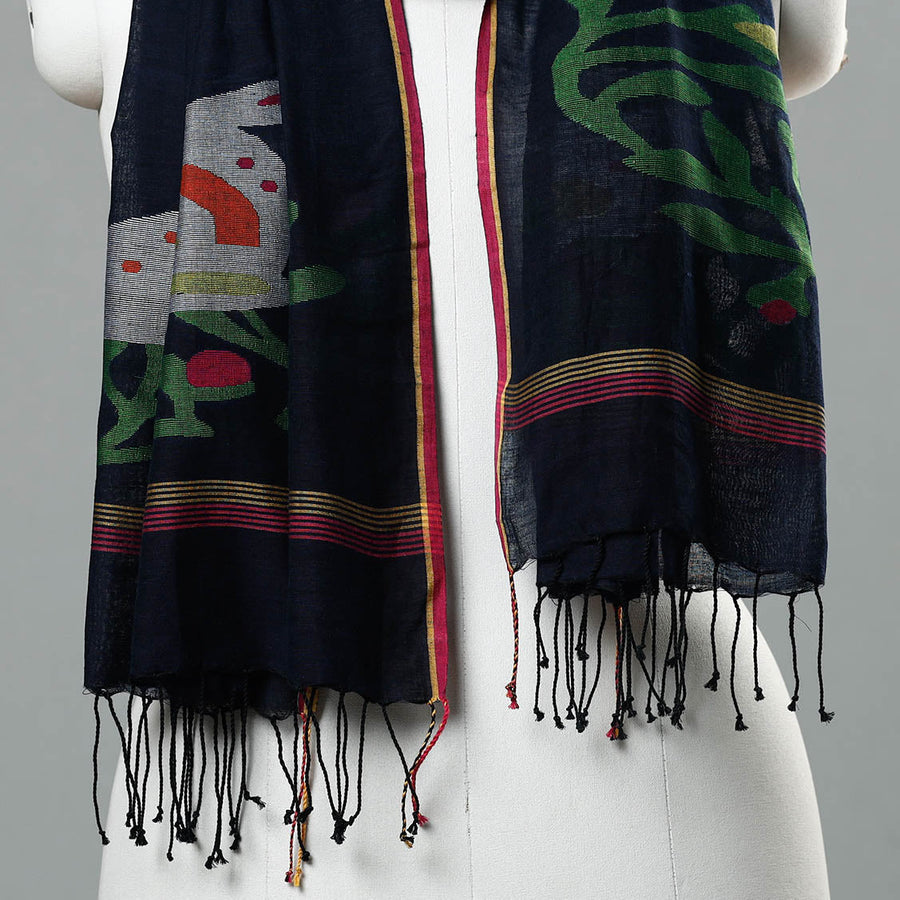 Experience the exquisite craftsmanship with our jamdani handloom cotton stole, made by the skilled artisans of Habibpur, Nadia District, West Bengal. Adorned with charming tassels. It seamlessly transitions from casual to formal occasions. This stole is a testament to the traditional weaving technique of Jamdani, showcasing the skilled artistry of West Bengal's artisans. Embrace elegance and cultural heritage in every thread.
