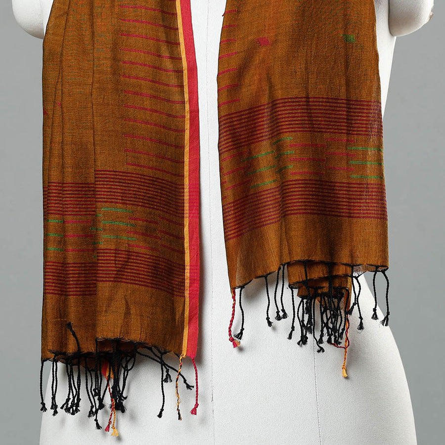Experience the exquisite craftsmanship with our jamdani handloom cotton stole, made by the skilled artisans of Habibpur, Nadia District, West Bengal. Adorned with charming tassels. It seamlessly transitions from casual to formal occasions. This stole is a testament to the traditional weaving technique of Jamdani, showcasing the skilled artistry of West Bengal's artisans. Embrace elegance and cultural heritage in every thread.
