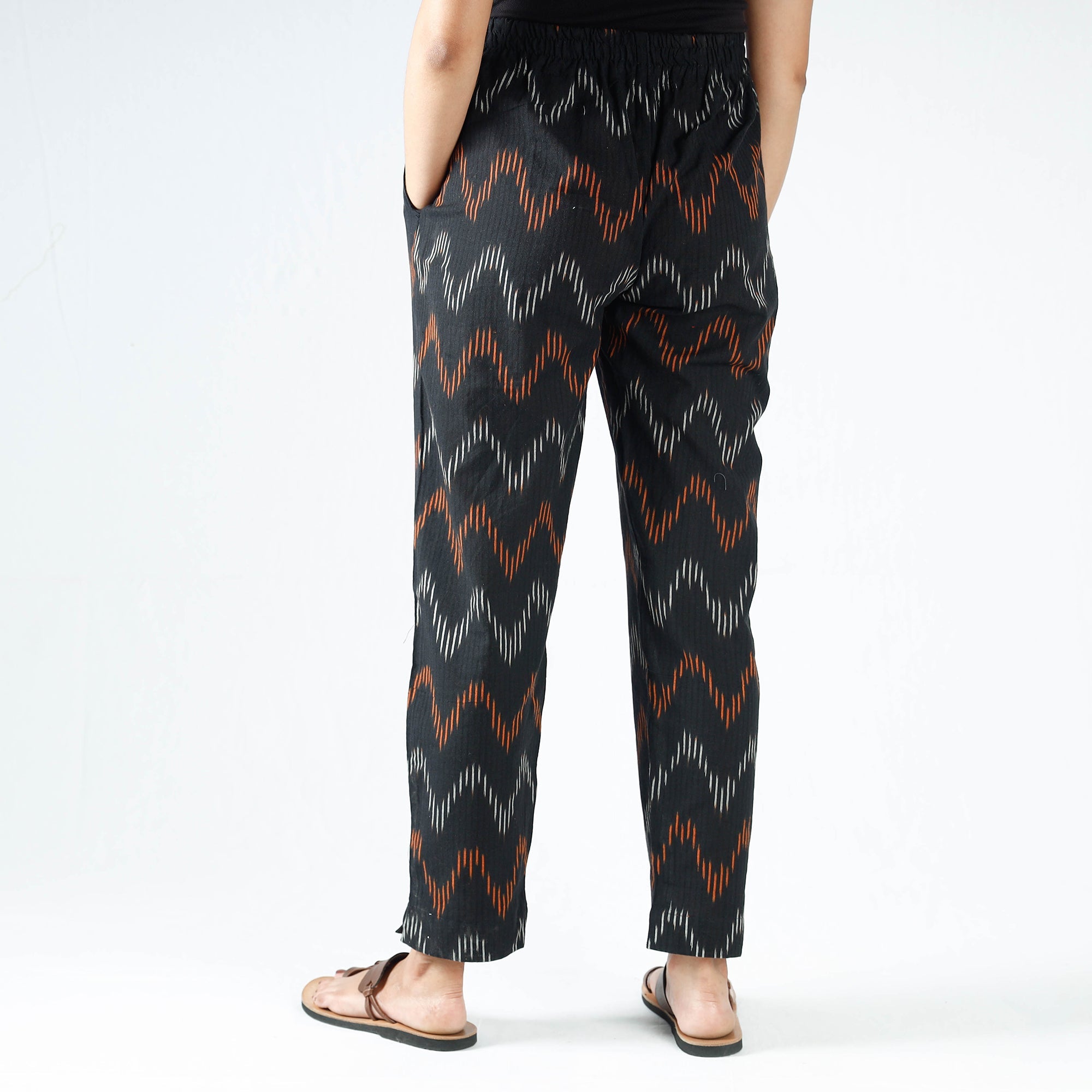Elevate your style with this stunning pochampally ikat cotton tapered casual pant. This cotton pant features an elasticized waist and two side pockets add functionality to this pant. It makes you feel comfortable and stylish all day long. This pant is perfect for your daily outings. The ikat dyeing technique used to create the beautiful patterns and colors of this pant is world-famous and admired by fashion designers.