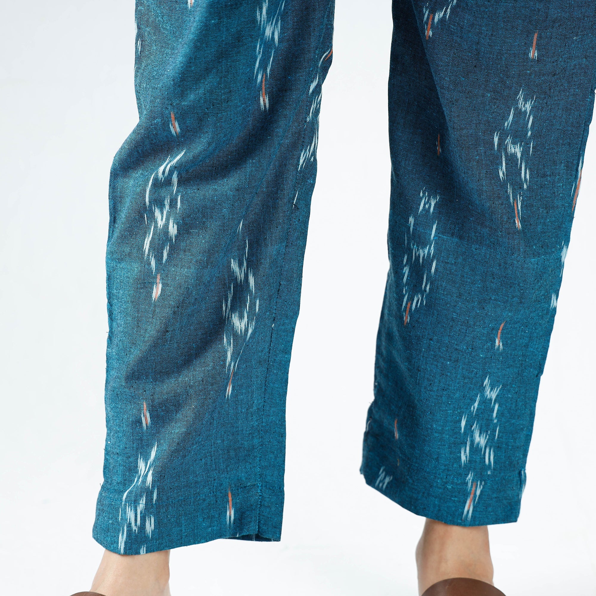 Elevate your style with this stunning pochampally ikat cotton tapered casual pant. This cotton pant features an elasticized waist and two side pockets add functionality to this pant. It makes you feel comfortable and stylish all day long. This pant is perfect for your daily outings. The ikat dyeing technique used to create the beautiful patterns and colors of this pant is world-famous and admired by fashion designers.