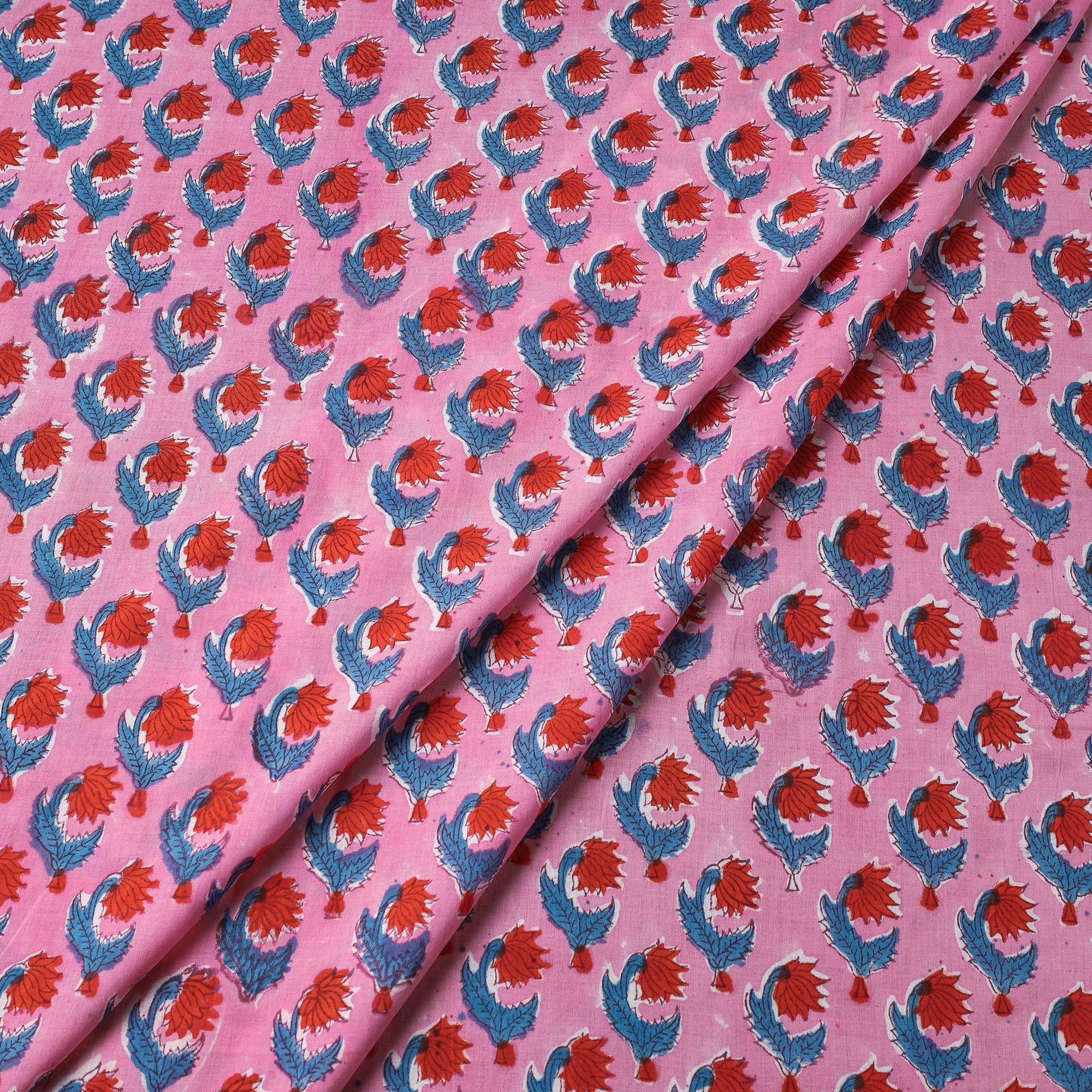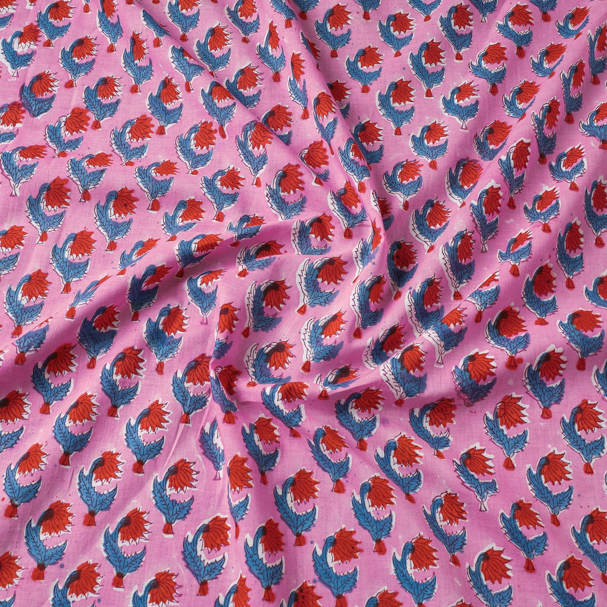 Pink - Cotton Hand Block Sanganeri Print Fabric 10
