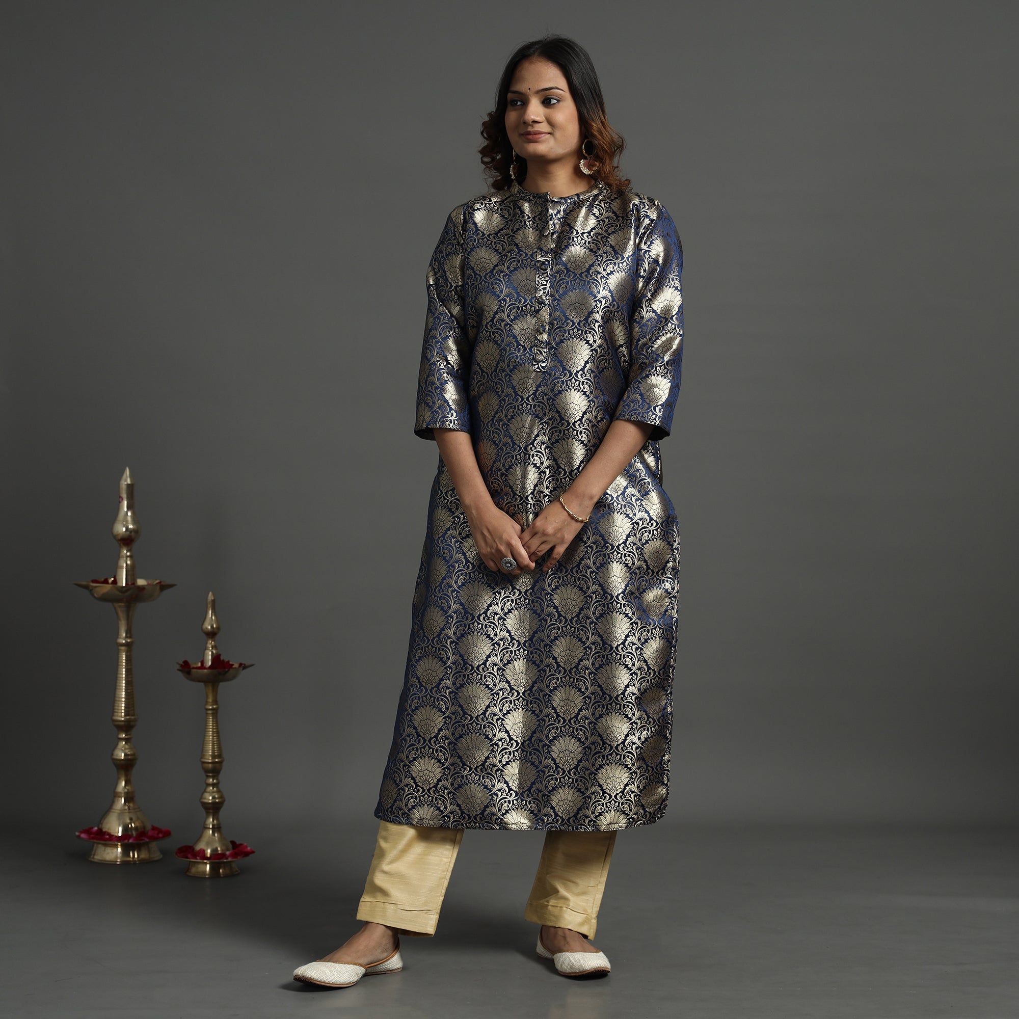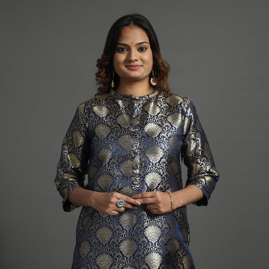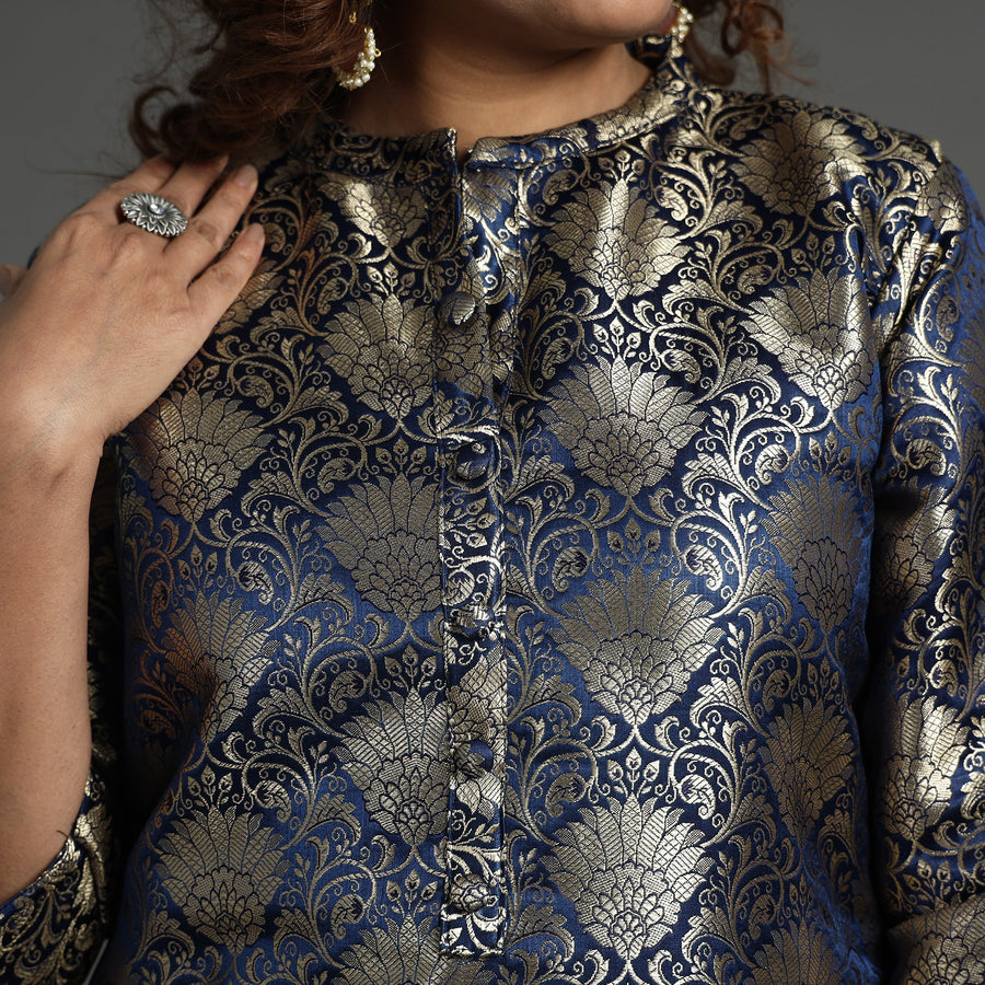 Elevate your style with our elegant banarasi brocade silk kurta and pant set. Crafted from a luxurious blend of polyester and high-quality viscose, the kurta showcases intricate detailing. The slub silk pant ensures comfort with an elasticized waist and two side pockets. A convenient one-side pocket in the kurta adds functionality. Pair with traditional accessories for a classic look or experiment with modern elements for a contemporary twist. Perfect for special occasions and celebrations, this kurta set exudes traditional charm with its elegant design.