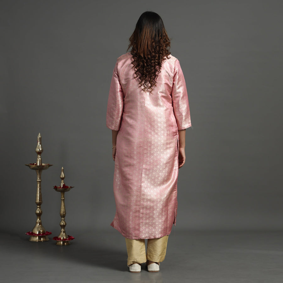 Elevate your style with our elegant banarasi brocade silk kurta and pant set. Crafted from a luxurious blend of polyester and high-quality viscose, the kurta showcases intricate detailing. The slub silk pant ensures comfort with an elasticized waist and two side pockets. A convenient one-side pocket in the kurta adds functionality. Pair with traditional accessories for a classic look or experiment with modern elements for a contemporary twist. Perfect for special occasions and celebrations, this kurta set exudes traditional charm with its elegant design.