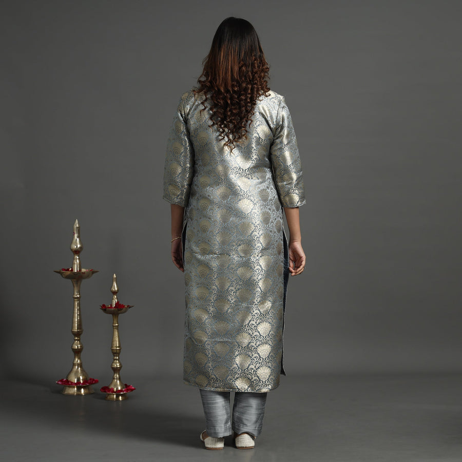 Elevate your style with our elegant banarasi brocade silk kurta and pant set. Crafted from a luxurious blend of polyester and high-quality viscose, the kurta showcases intricate detailing. The slub silk pant ensures comfort with an elasticized waist and two side pockets. A convenient one-side pocket in the kurta adds functionality. Pair with traditional accessories for a classic look or experiment with modern elements for a contemporary twist. Perfect for special occasions and celebrations, this kurta set exudes traditional charm with its elegant design.