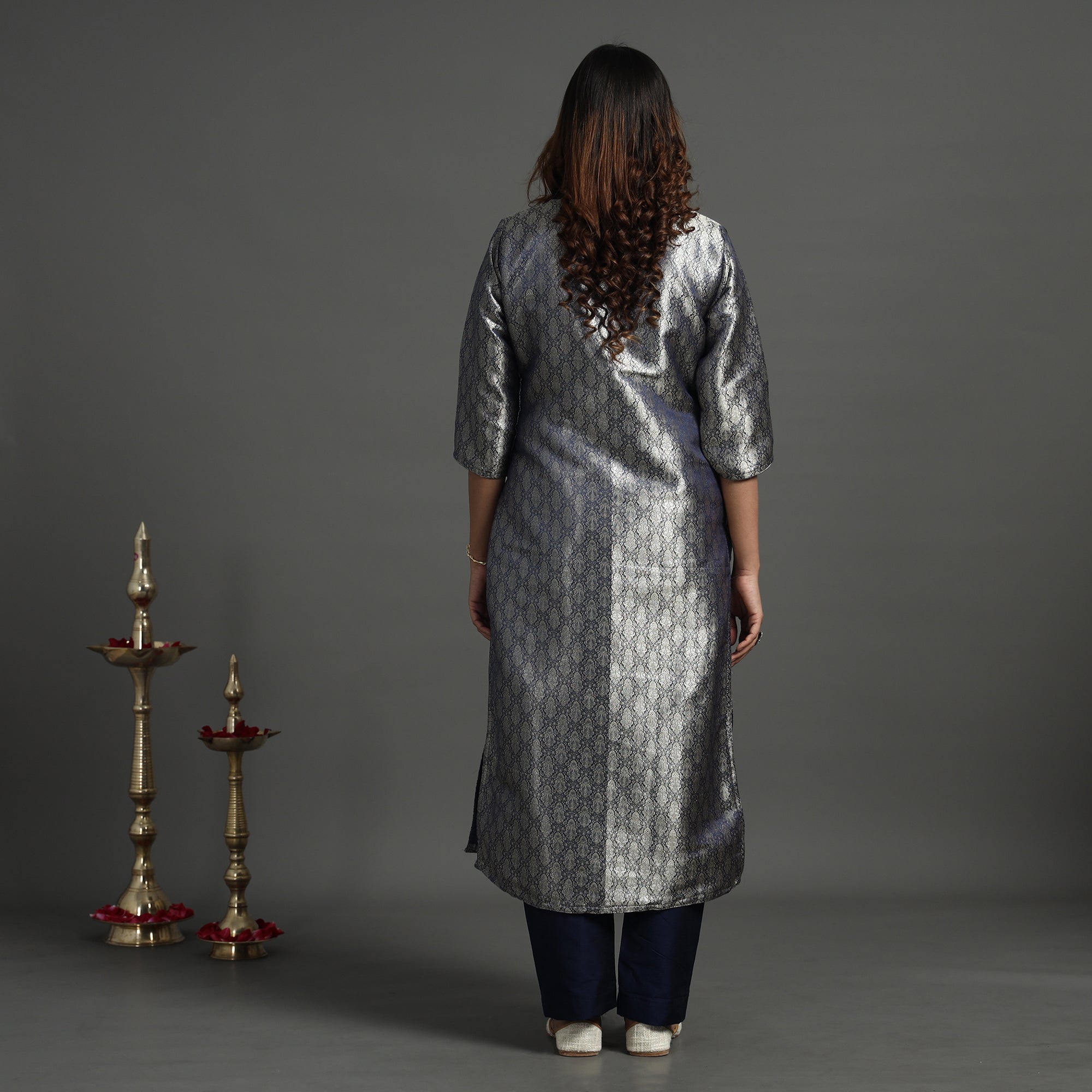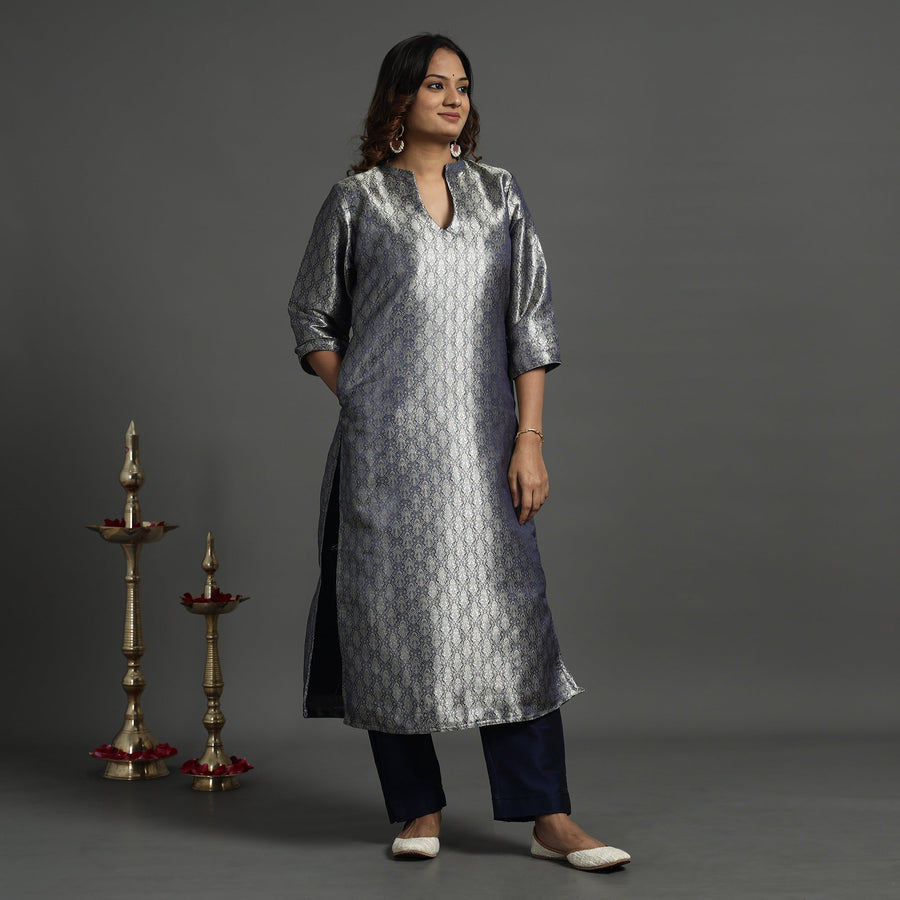 Elevate your style with our elegant banarasi brocade silk kurta and pant set. Crafted from a luxurious blend of polyester and high-quality viscose, the kurta showcases intricate detailing. The slub silk pant ensures comfort with an elasticized waist and two side pockets. A convenient one-side pocket in the kurta adds functionality. Pair with traditional accessories for a classic look or experiment with modern elements for a contemporary twist. Perfect for special occasions and celebrations, this kurta set exudes traditional charm with its elegant design.