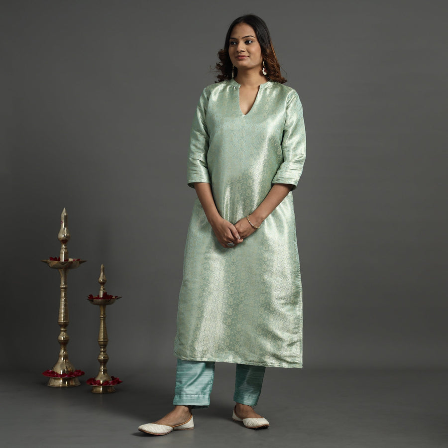 Elevate your style with our elegant banarasi brocade silk kurta and pant set. Crafted from a luxurious blend of polyester and high-quality viscose, the kurta showcases intricate detailing. The slub silk pant ensures comfort with an elasticized waist and two side pockets. A convenient one-side pocket in the kurta adds functionality. Pair with traditional accessories for a classic look or experiment with modern elements for a contemporary twist. Perfect for special occasions and celebrations, this kurta set exudes traditional charm with its elegant design.