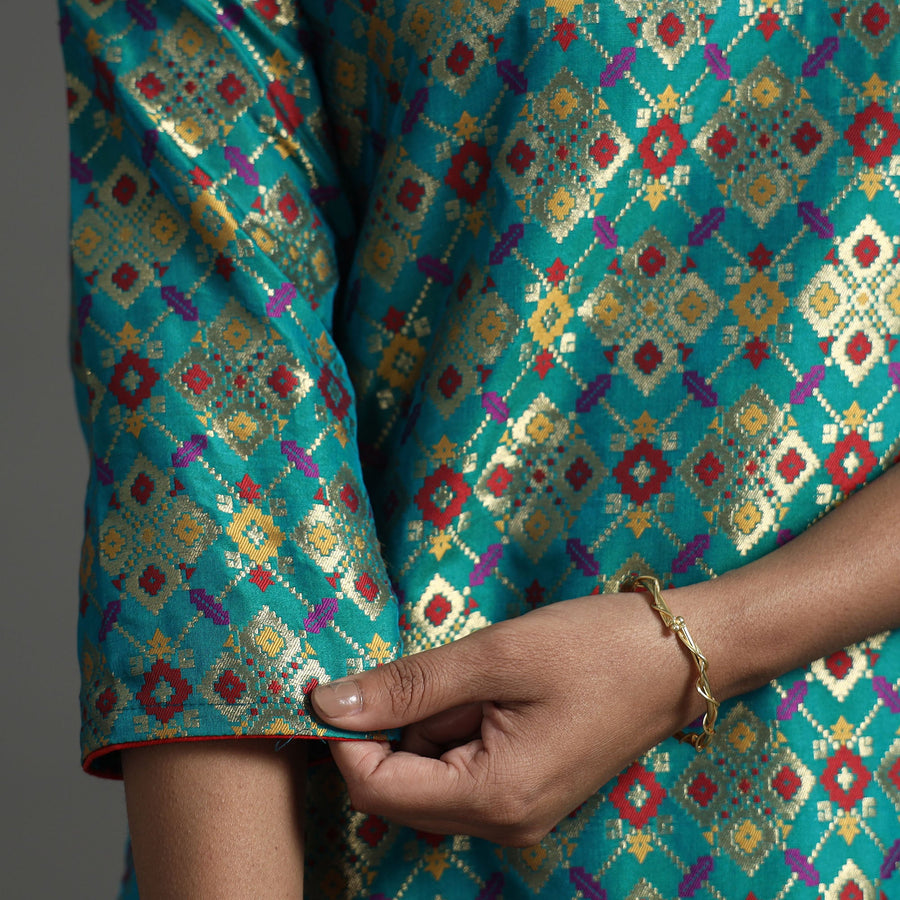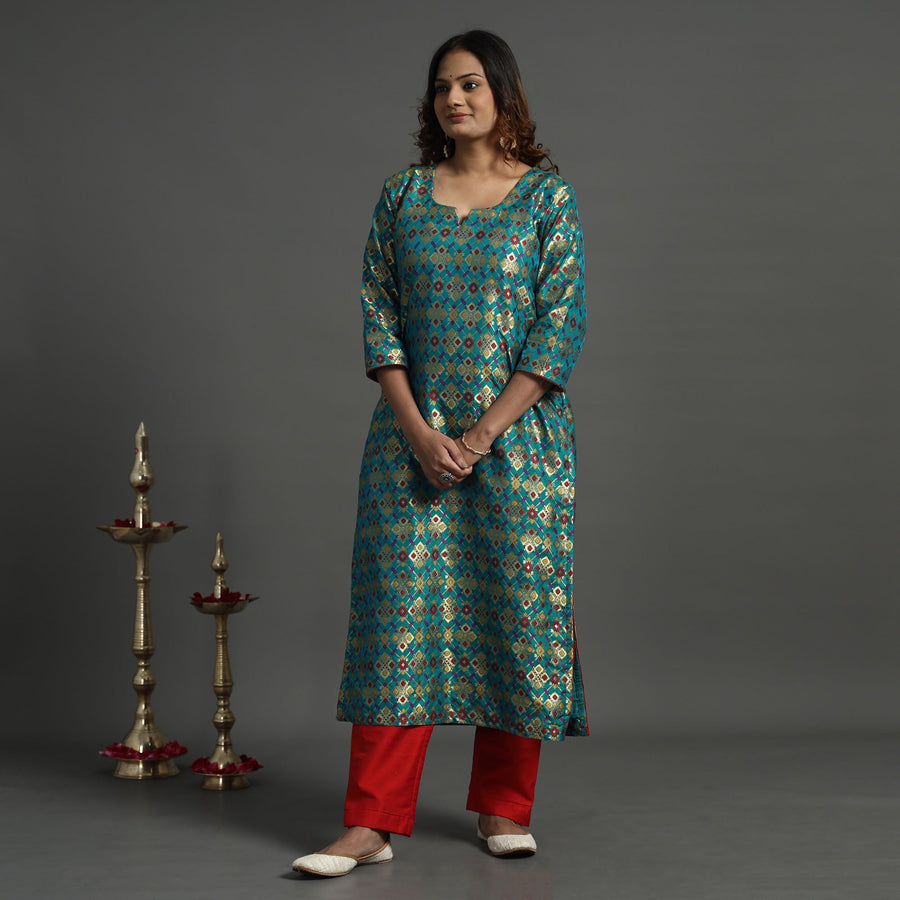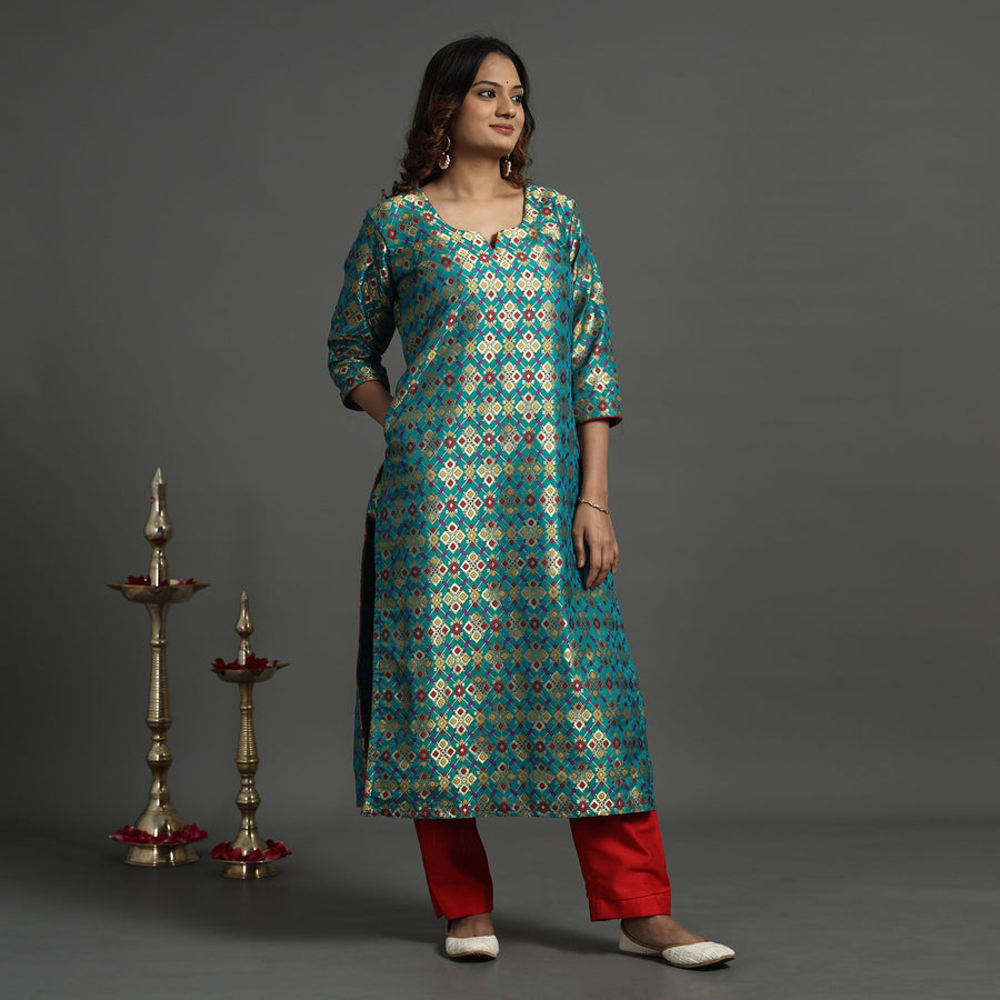 Elevate your style with our elegant banarasi brocade silk kurta and pant set. Crafted from a luxurious blend of polyester and high-quality viscose, the kurta showcases intricate detailing. The slub silk pant ensures comfort with an elasticized waist and two side pockets. A convenient one-side pocket in the kurta adds functionality. Pair with traditional accessories for a classic look or experiment with modern elements for a contemporary twist. Perfect for special occasions and celebrations, this kurta set exudes traditional charm with its elegant design.