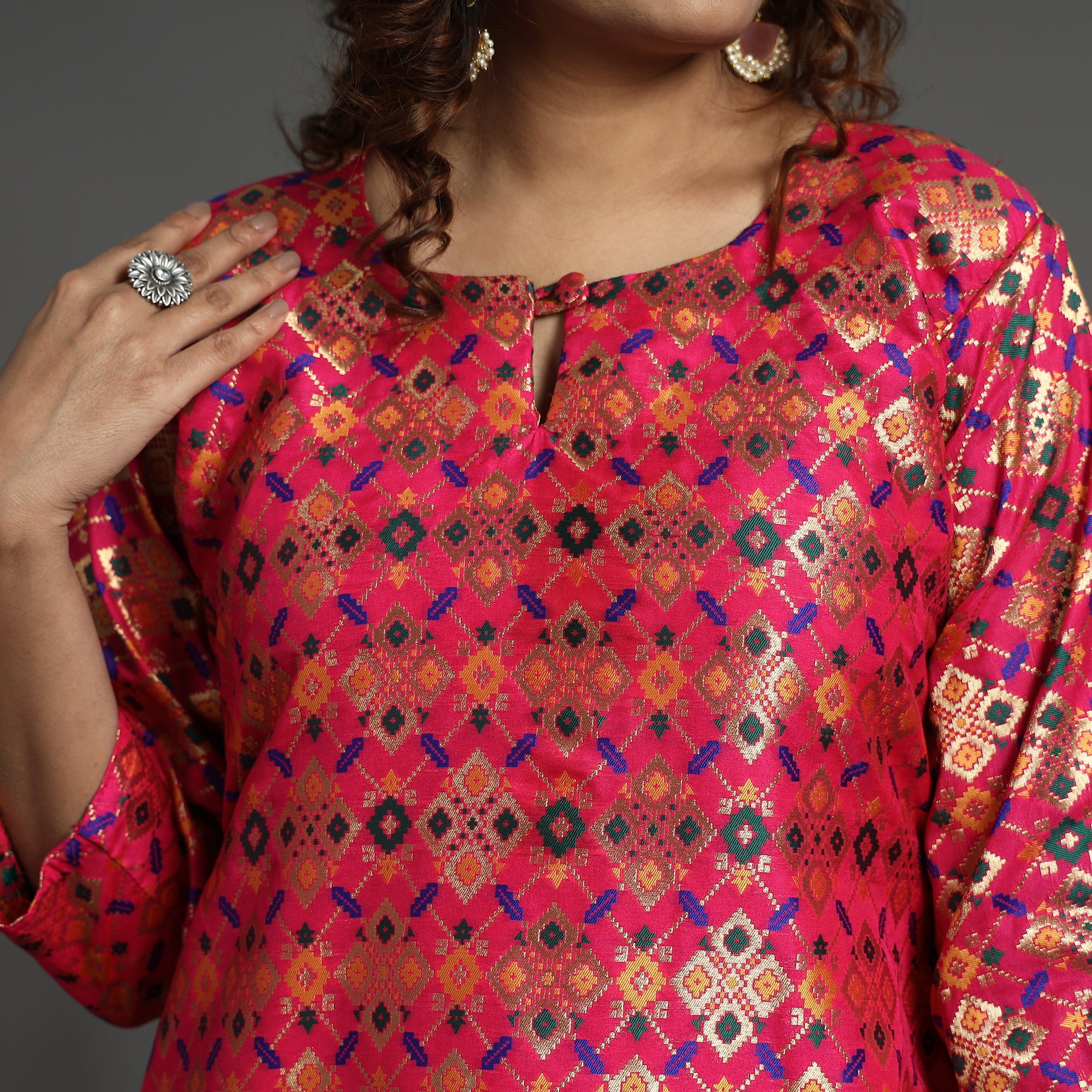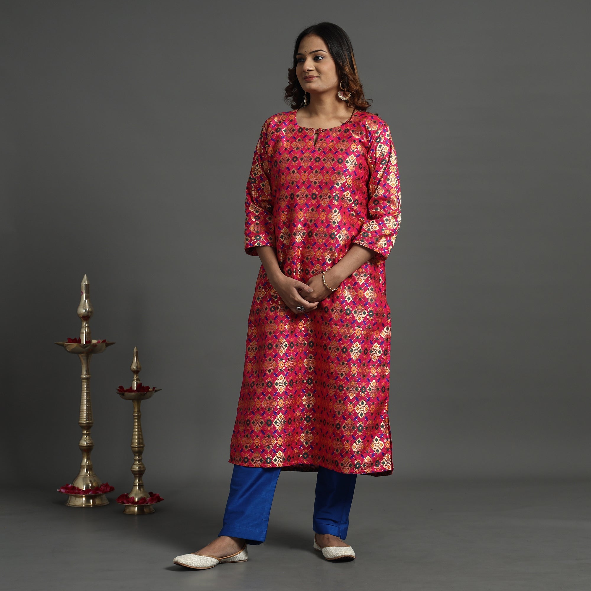 Elevate your style with our elegant banarasi brocade silk kurta and pant set. Crafted from a luxurious blend of polyester and high-quality viscose, the kurta showcases intricate detailing. The slub silk pant ensures comfort with an elasticized waist and two side pockets. A convenient one-side pocket in the kurta adds functionality. Pair with traditional accessories for a classic look or experiment with modern elements for a contemporary twist. Perfect for special occasions and celebrations, this kurta set exudes traditional charm with its elegant design.
