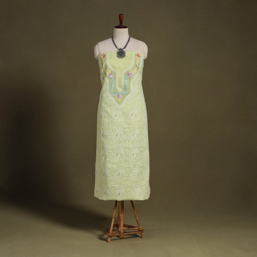 Green - Lucknowi Chikankari Work Jacquard Unstitched Kurta Material (2.5M) 130