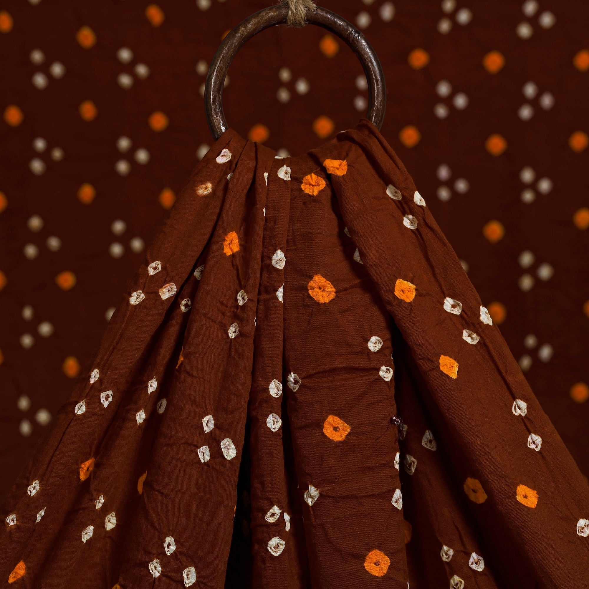 Elevate your wardrobe with this exquisite chocolate brown kutch bandhani tie-dye cotton fabric. Featuring a majestic bandhani pattern, this fabric is hand-tied and dyed using the traditional technique practiced by the artisans of Kutch. The art of bandhani is a highly skilled process that involves tightly tying fabric with threads at several points to create intricate patterns. This fine quality fabric is a testament to the craftsmanship and rich cultural heritage of Kutch.