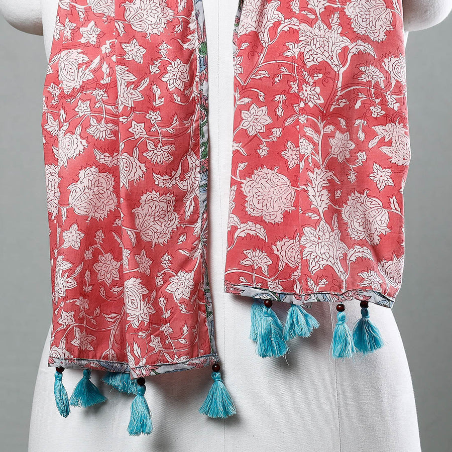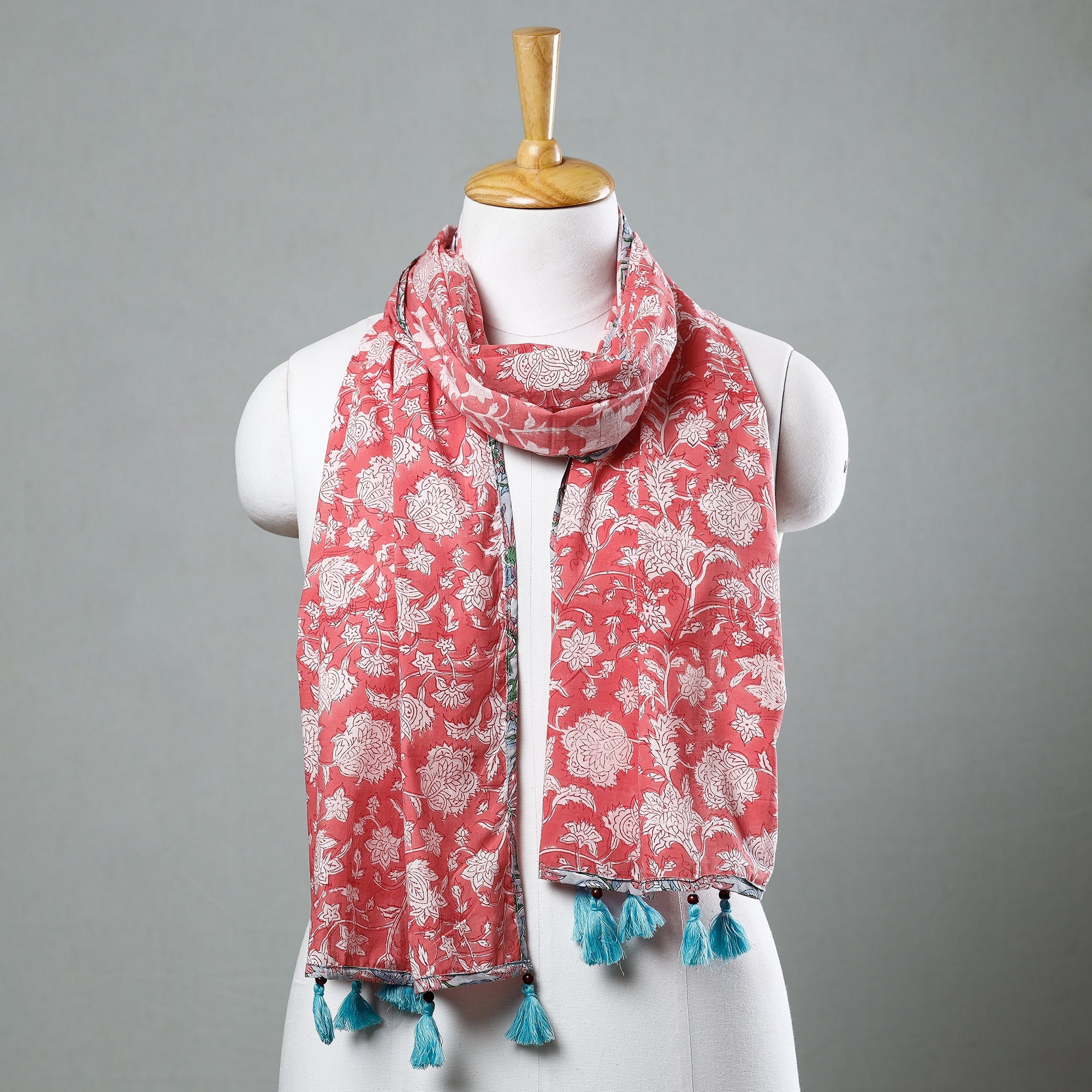 Elevate your style with this fine quality delicate floral sanganeri block printed cotton stole with tassels. This stole features intricate floral patterns, also known as 'Buttas', which are exclusive to sanganeri prints. The elaborate detailing of the flowers and petals showcases the artistry of this hand-block printing technique originating from Sanganer, Rajasthan. The use of bleed-free VAT dyes ensures the longevity and vibrancy of the colors. Add a touch of elegance to your wardrobe with this exquisite piece of craftsmanship.