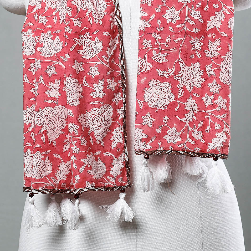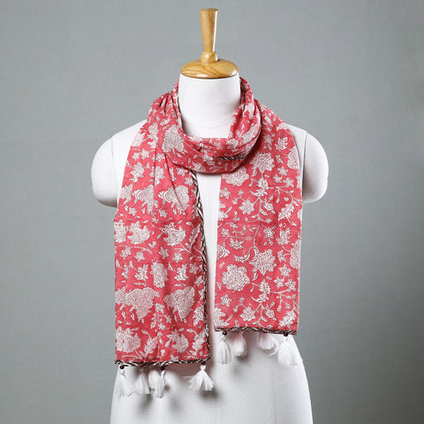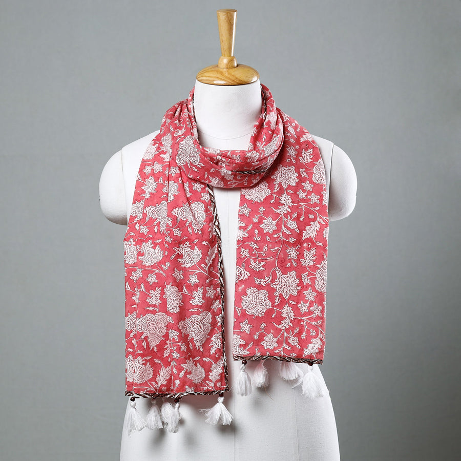 Elevate your style with this fine quality delicate floral sanganeri block printed cotton stole with tassels. This stole features intricate floral patterns, also known as 'Buttas', which are exclusive to sanganeri prints. The elaborate detailing of the flowers and petals showcases the artistry of this hand-block printing technique originating from Sanganer, Rajasthan. The use of bleed-free VAT dyes ensures the longevity and vibrancy of the colors. Add a touch of elegance to your wardrobe with this exquisite piece of craftsmanship.