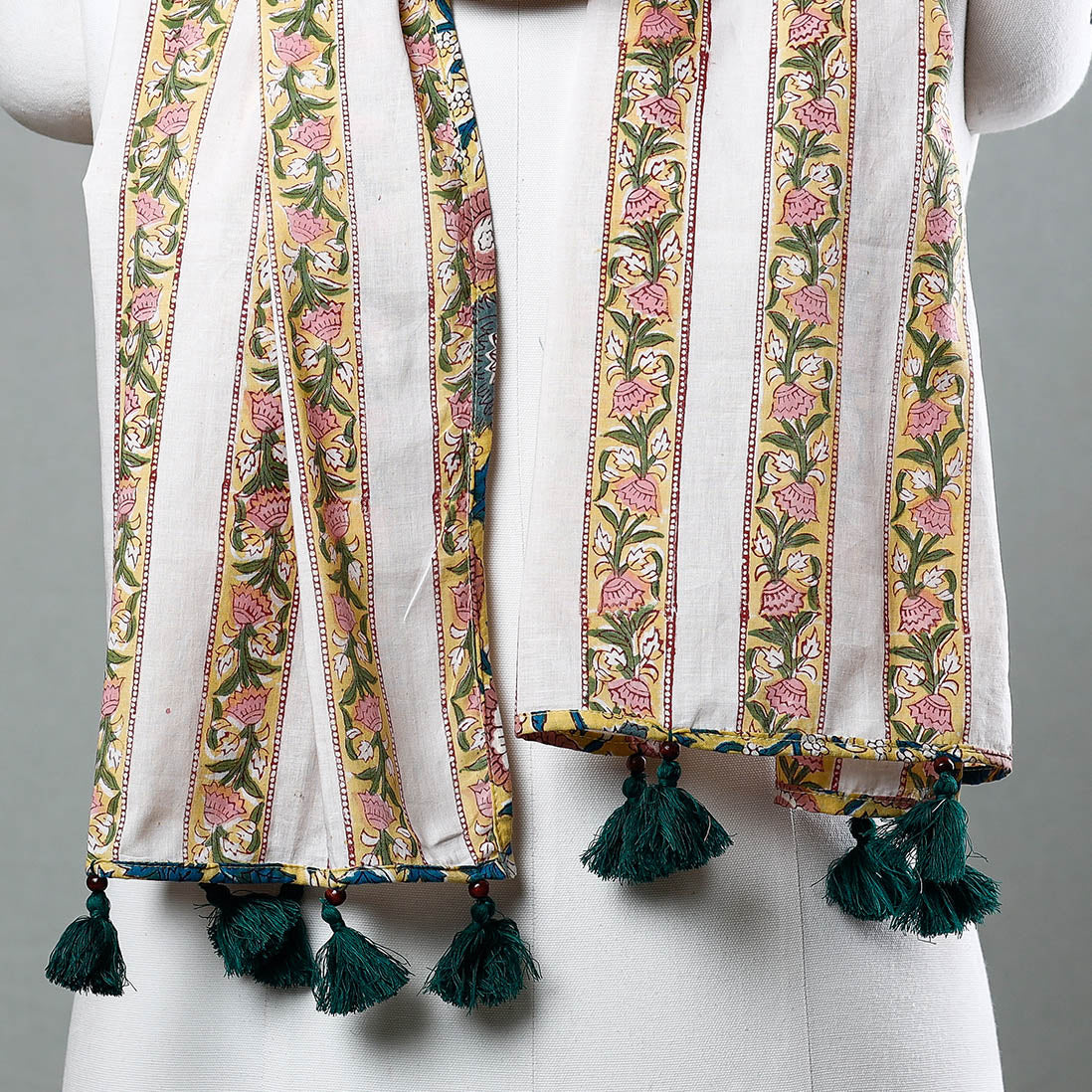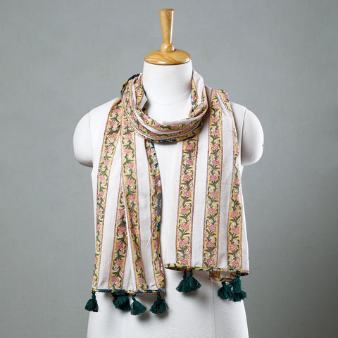 Multicolor - Sanganeri Block Printed Cotton Stole with Tassels