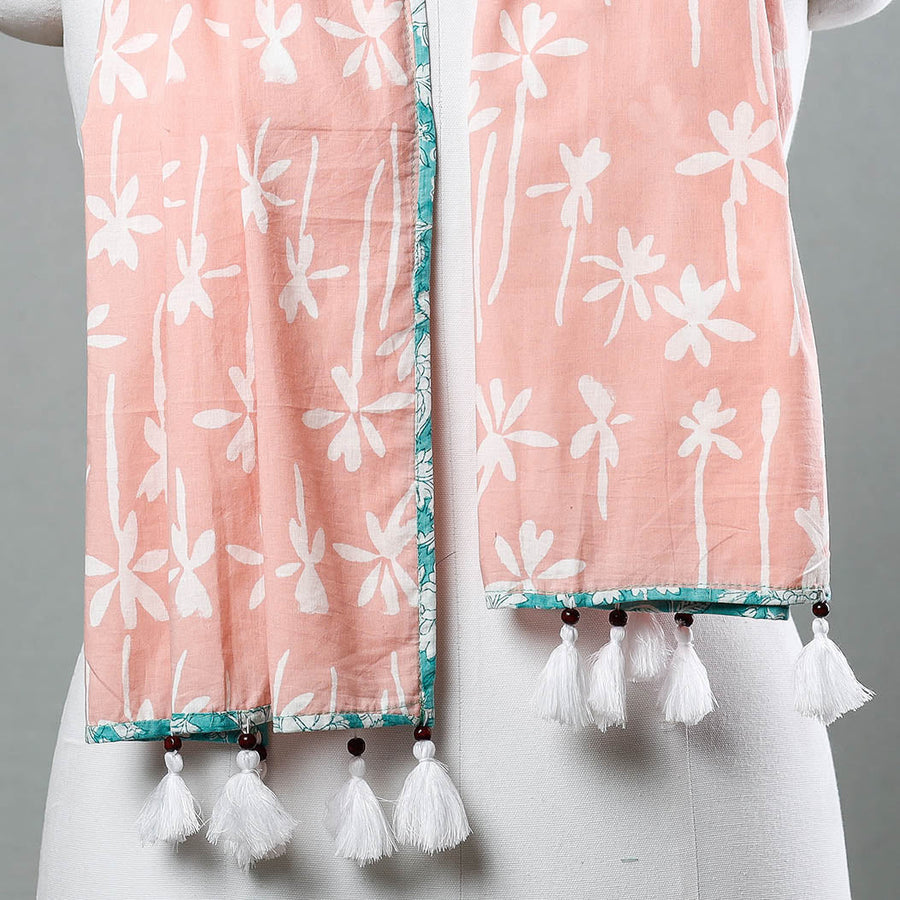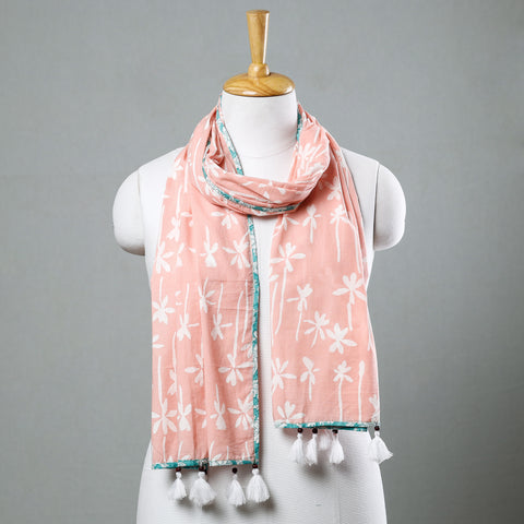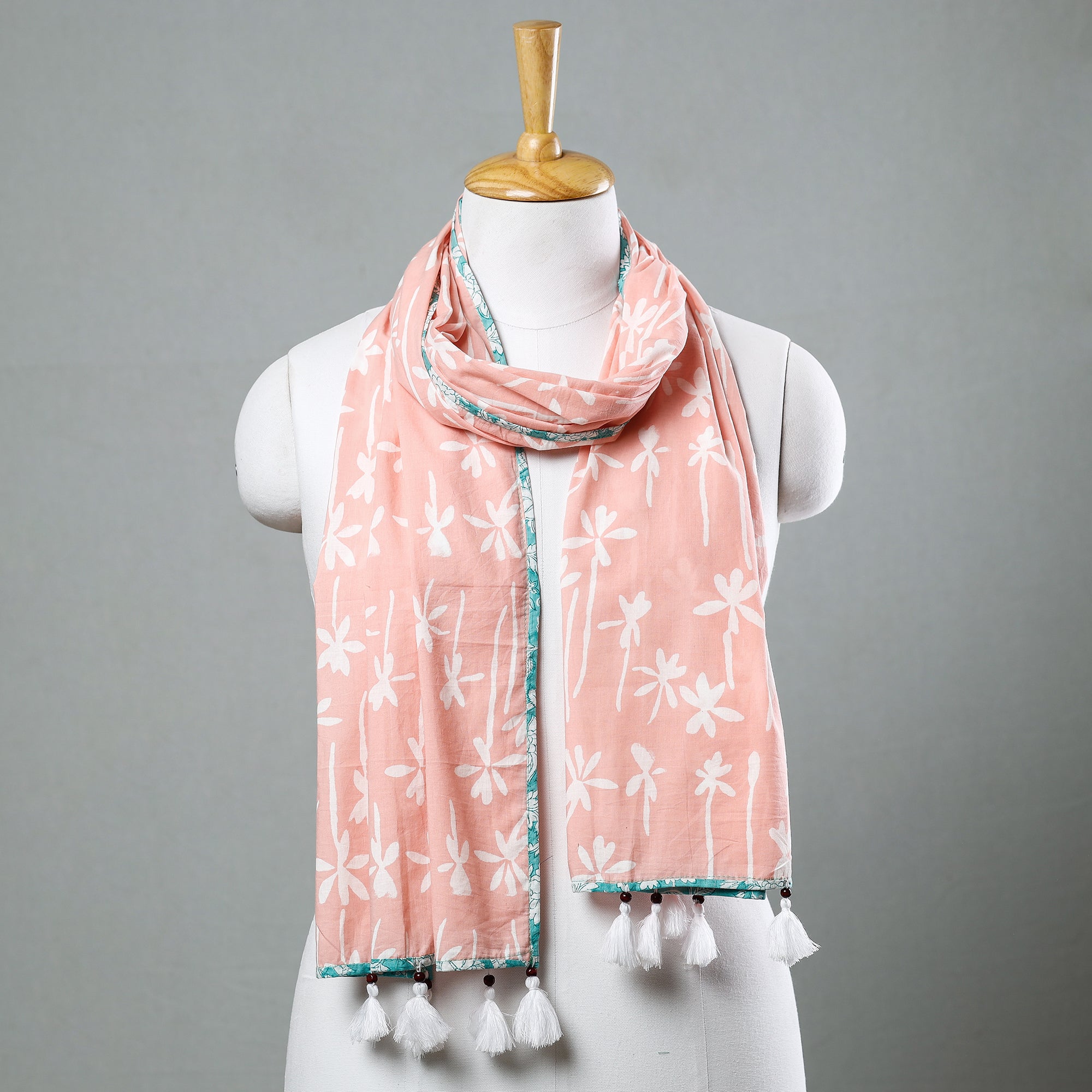 Elevate your style with this fine quality delicate floral sanganeri block printed cotton stole with tassels. This stole features intricate floral patterns, also known as 'Buttas', which are exclusive to sanganeri prints. The elaborate detailing of the flowers and petals showcases the artistry of this hand-block printing technique originating from Sanganer, Rajasthan. The use of bleed-free VAT dyes ensures the longevity and vibrancy of the colors. Add a touch of elegance to your wardrobe with this exquisite piece of craftsmanship.