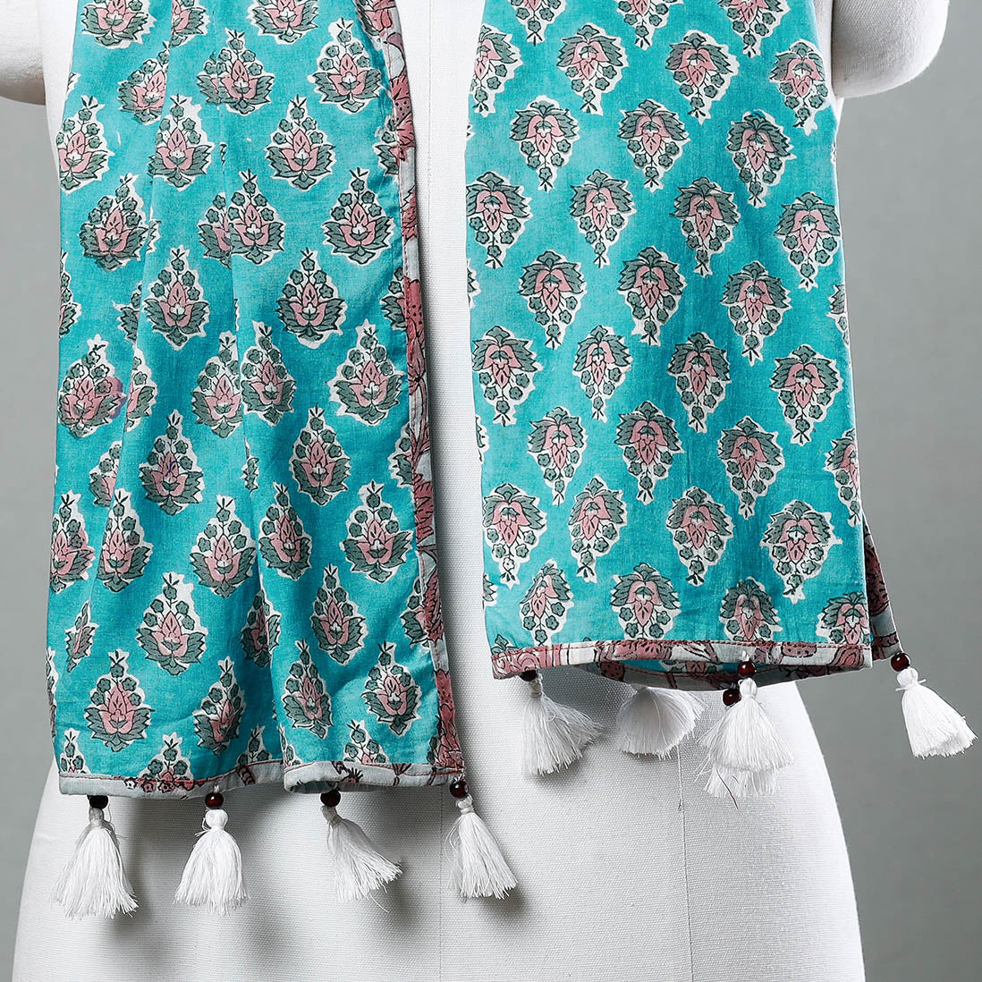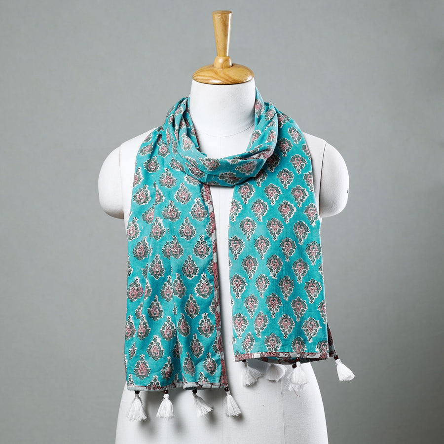 Elevate your style with this fine quality delicate floral sanganeri block printed cotton stole with tassels. This stole features intricate floral patterns, also known as 'Buttas', which are exclusive to sanganeri prints. The elaborate detailing of the flowers and petals showcases the artistry of this hand-block printing technique originating from Sanganer, Rajasthan. The use of bleed-free VAT dyes ensures the longevity and vibrancy of the colors. Add a touch of elegance to your wardrobe with this exquisite piece of craftsmanship.