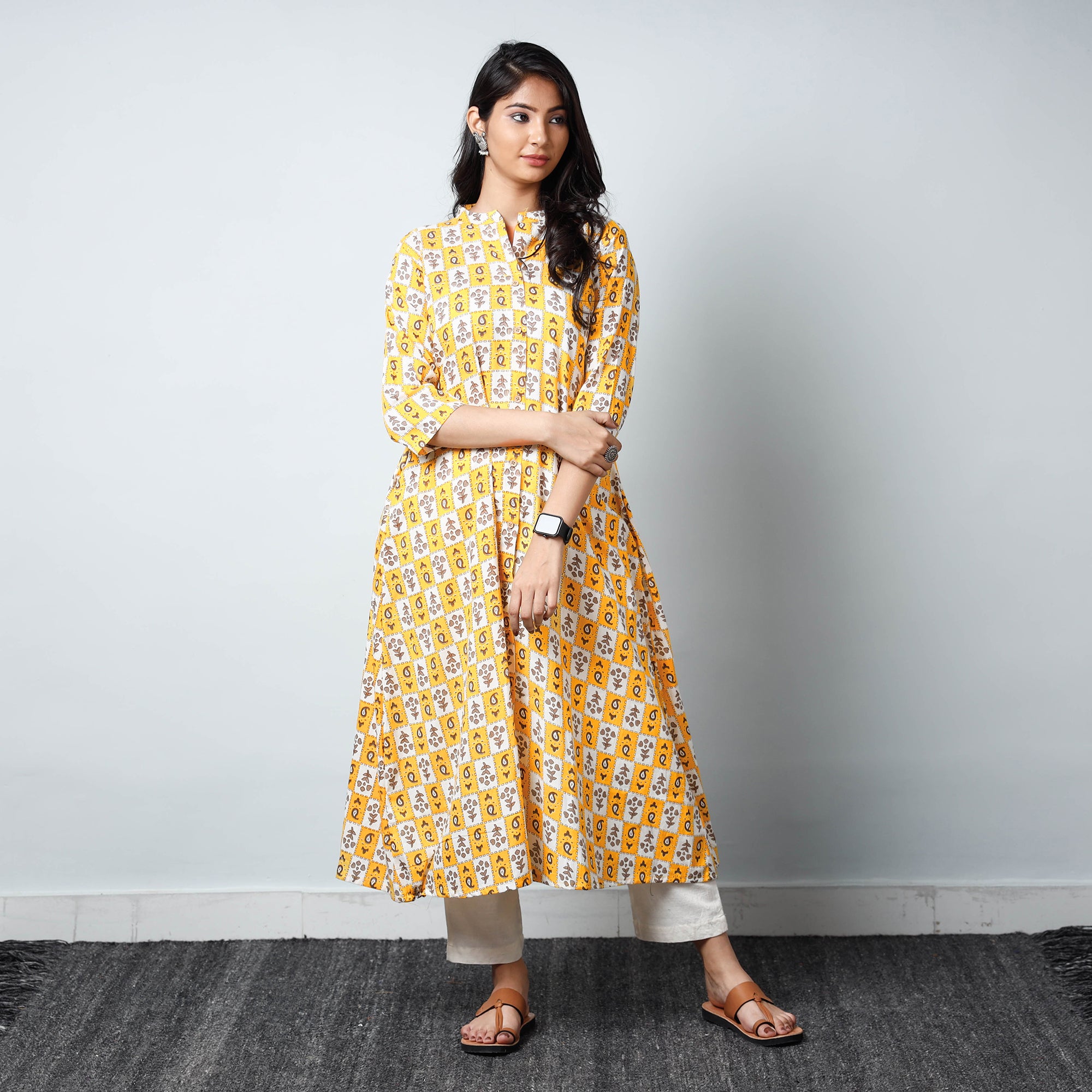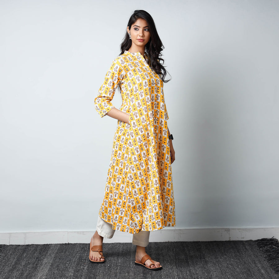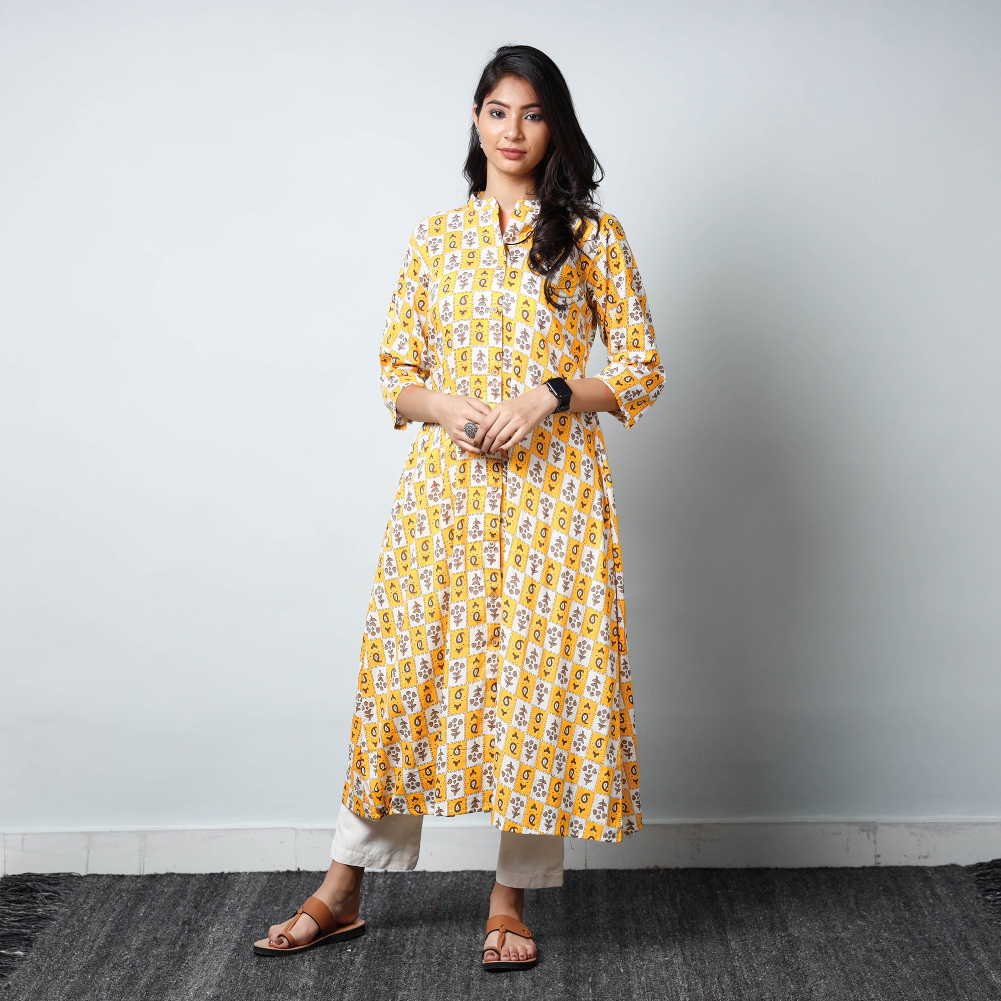 Look and feel beautiful in this uniquely designed Jaipur Screen Printedcotton long kurta with one side pocket. This cotton kurta makes you comfortable with ease all day long. jaipur Screen printing is a process involving big wooden screens is a printing technique from Sanganer, a village in the southern part of Jaipur, Rajasthan. Bleed free VAT dyes used.