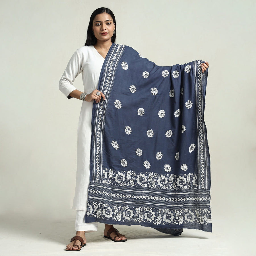 Adorn yourself with the timeless elegance of this pure cotton handloom tassels dupatta skillfully hand-embroidered using Bengal's traditional kantha technique by master artisan takdira begum from Bolpur, West Bengal. Each stitch narrates the region's rich cultural heritage. This dupatta is perfect for both casual and formal wear, it's a versatile addition to your wardrobe.