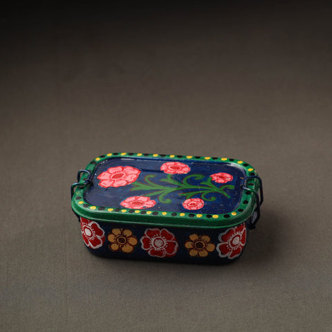Blue - Kavad Handpainted Stainless Steel Rectangle Shape Lunch Box (6 X 4 in) 34