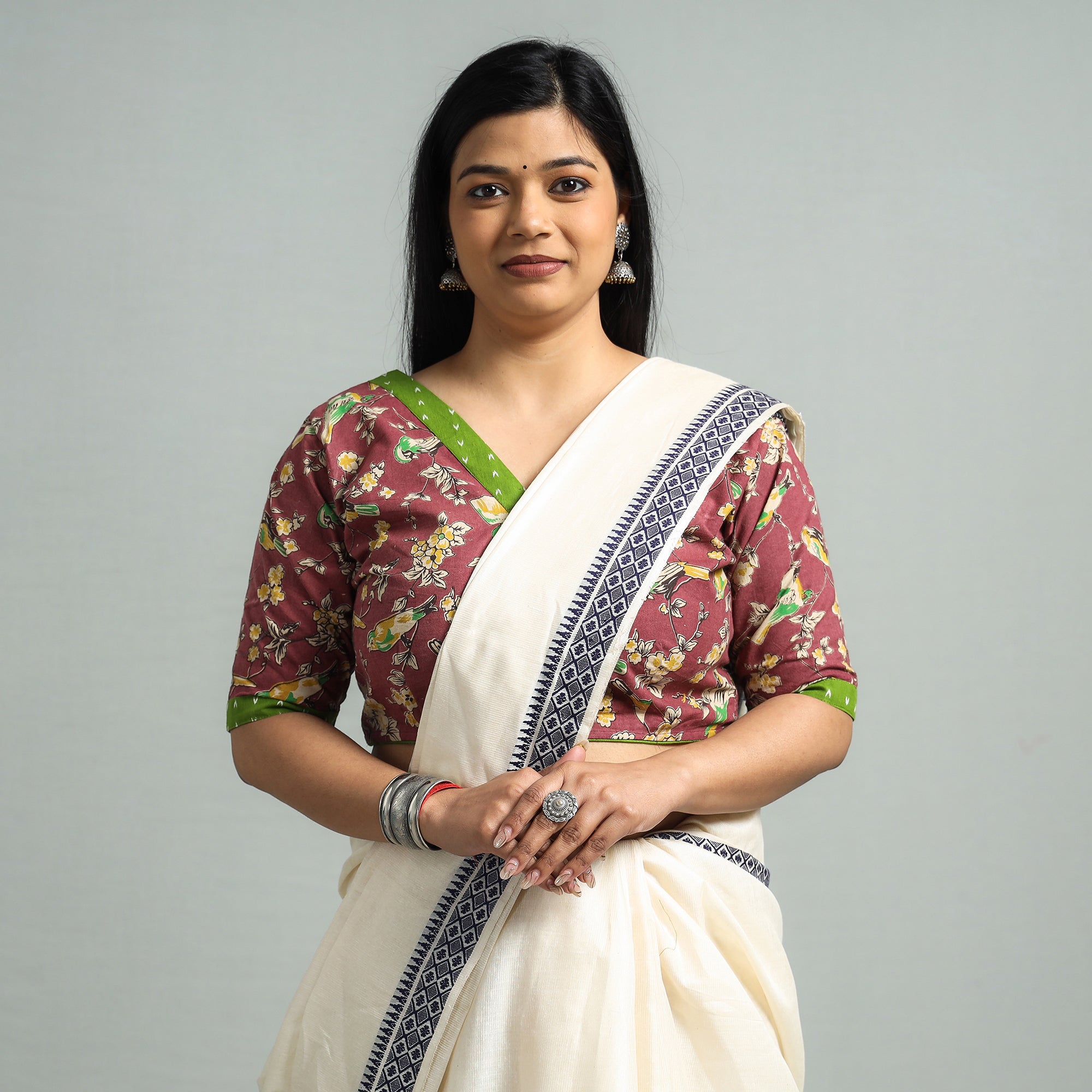 Elevate your style effortlessly with our exquisite kalamkari printed cotton stitched blouse with unique sleeve patch. It features elegant half sleeves that provide balanced coverage, making it perfect for any occasion. The hook lock adds convenience and allows for easy wear and removal.This versatile piece seamlessly blends traditional charm with contemporary flair. Perfect for pairing with sarees or skirts, the blouse adds a touch of sophistication to any ensemble. Embrace the artistry of Kalamkari while enjoying comfort and style in this beautifully crafted, ready-to-wear blouse.