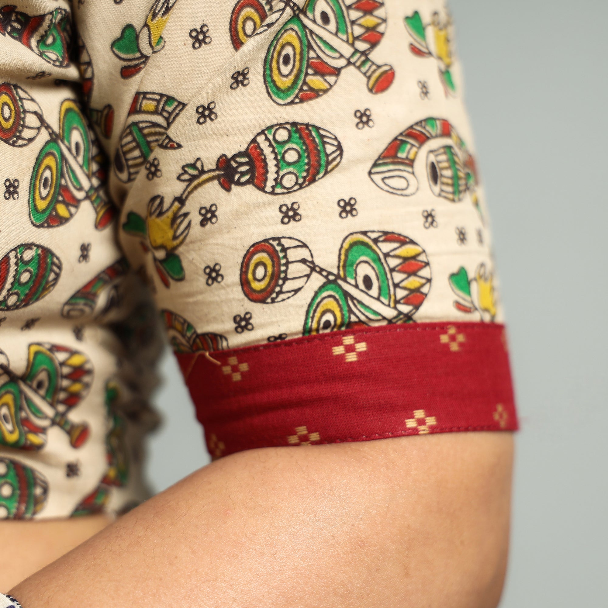 Elevate your style effortlessly with our exquisite kalamkari printed cotton stitched blouse with unique sleeve patch. It features elegant half sleeves that provide balanced coverage, making it perfect for any occasion. The hook lock adds convenience and allows for easy wear and removal.This versatile piece seamlessly blends traditional charm with contemporary flair. Perfect for pairing with sarees or skirts, the blouse adds a touch of sophistication to any ensemble. Embrace the artistry of Kalamkari while enjoying comfort and style in this beautifully crafted, ready-to-wear blouse.