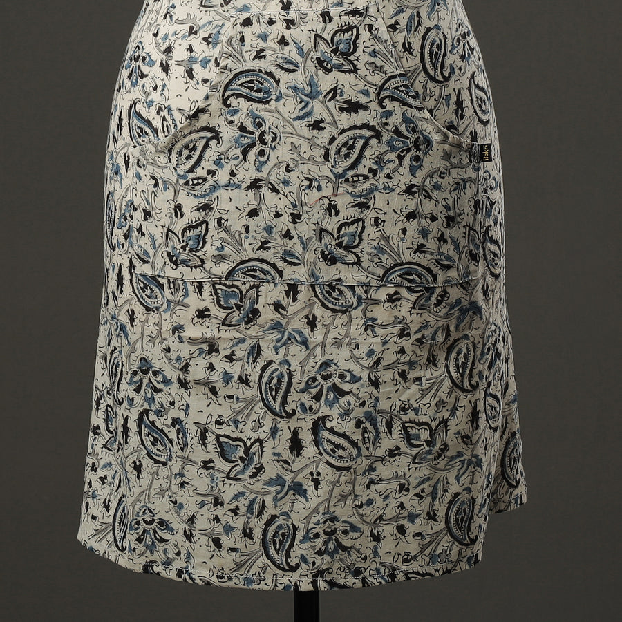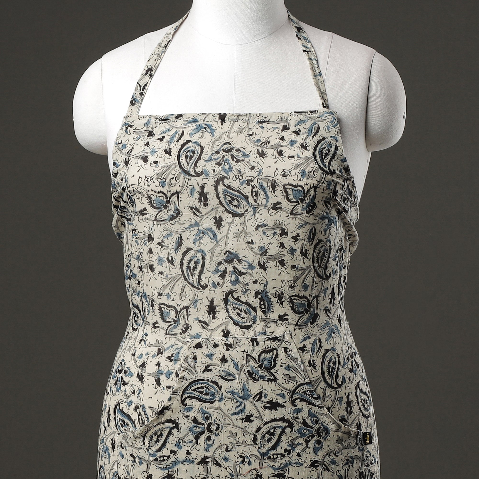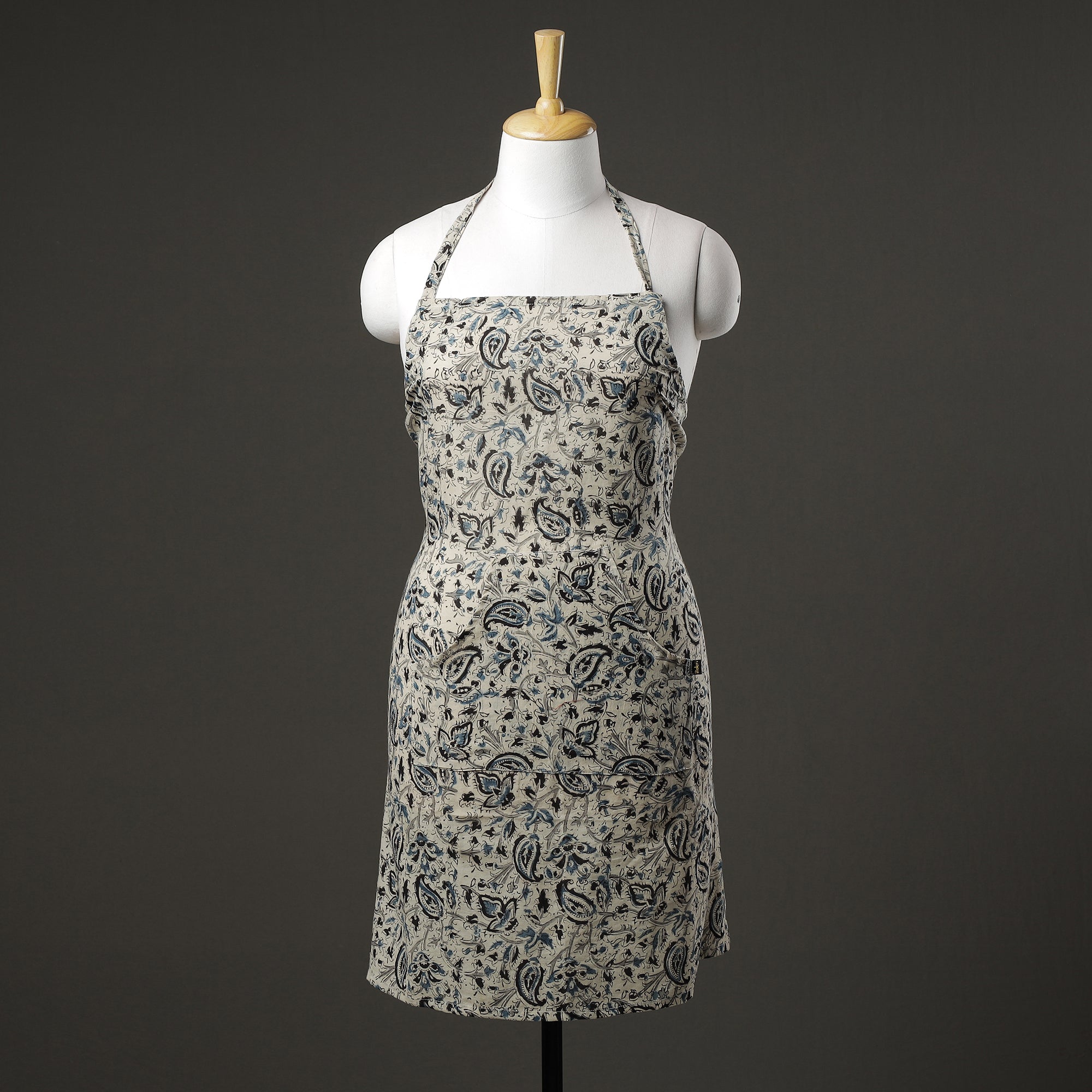 This beige kalamkari block printed cotton apron with pocket - a versatile and stylish addition to your cooking and baking ensemble! Made from high-quality cotton material, this apron is perfect for protecting your clothing from splatters and while you. The traditional kalamkari hand block print adds a touch of elegance and sophistication to your cooking attire, making it a great choice for both home cooks and professional chefs. With a convenient pocket at the front, this apron allows you to keep all your essential kitchen tools close at hand. Whether you need a spatula, spoon or timer, you can easily store it in the pocket for easy access while you work. The adjustable neck strap and waist ties ensure a comfortable and secure fit for all body types, making this apron suitable for both men and women.